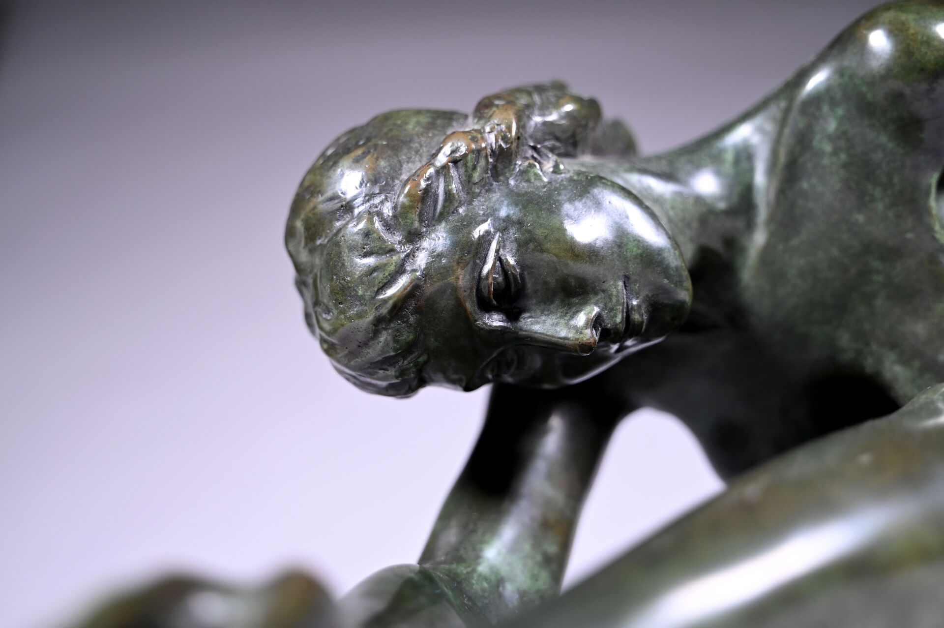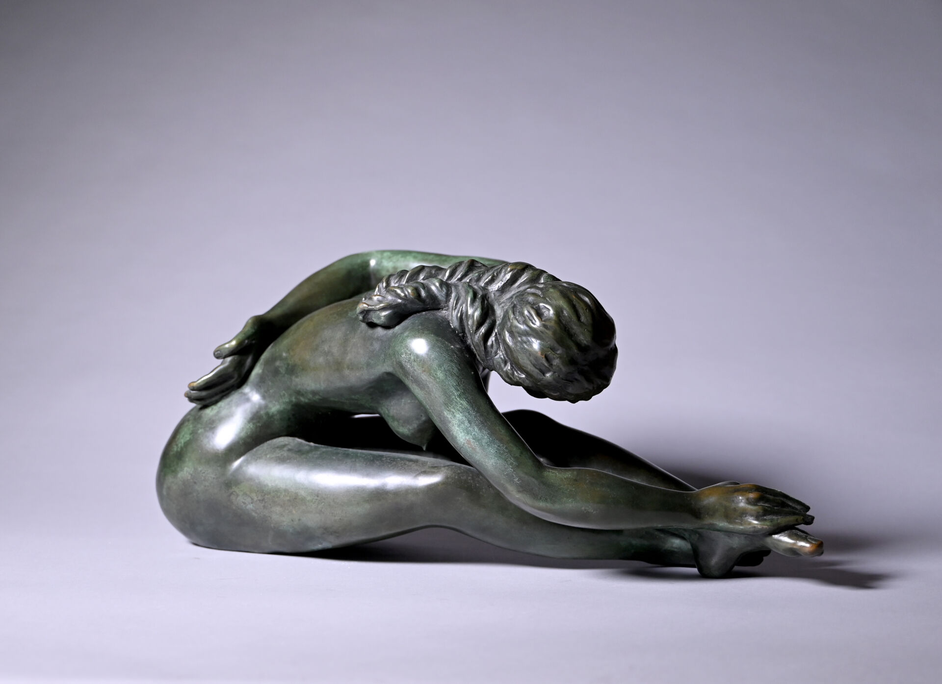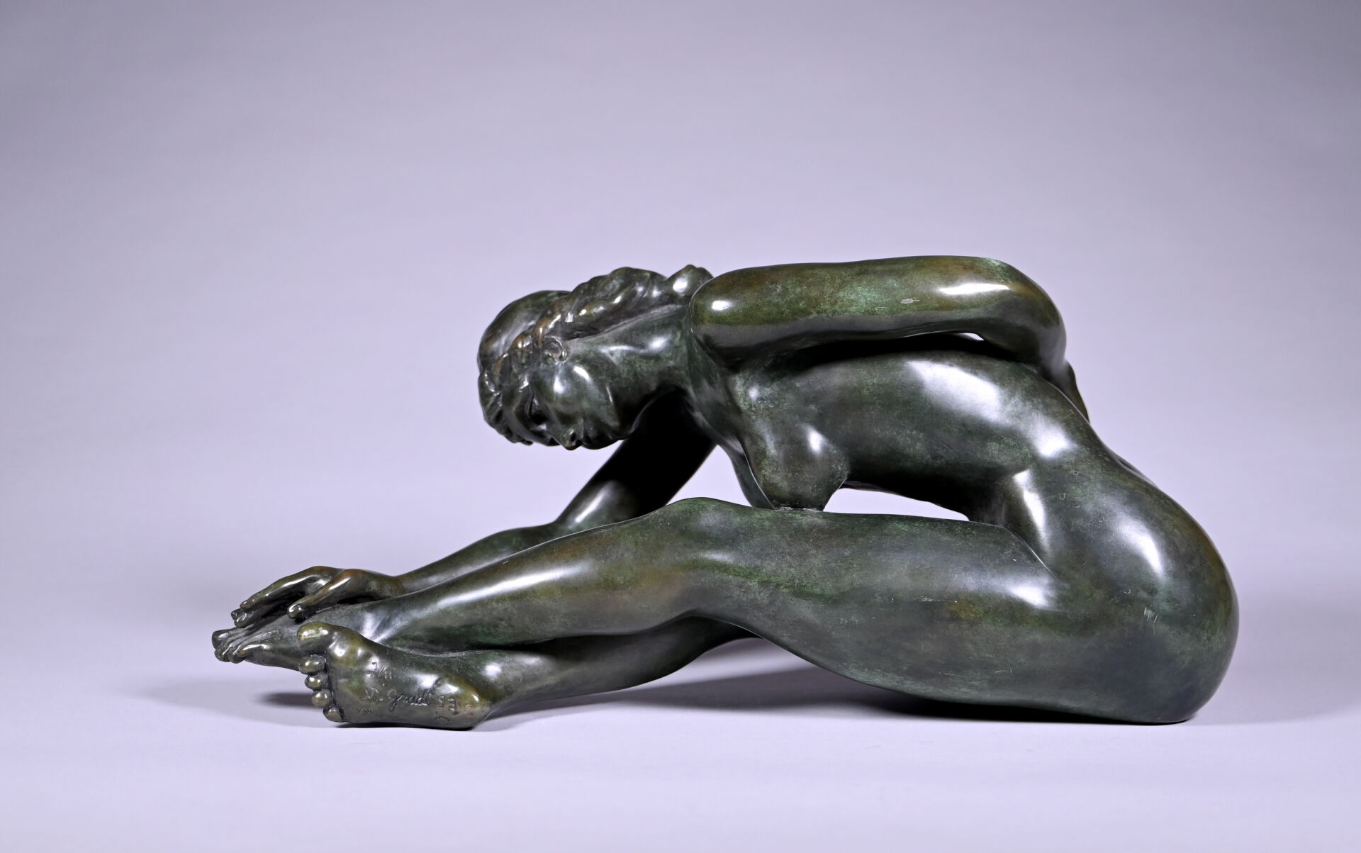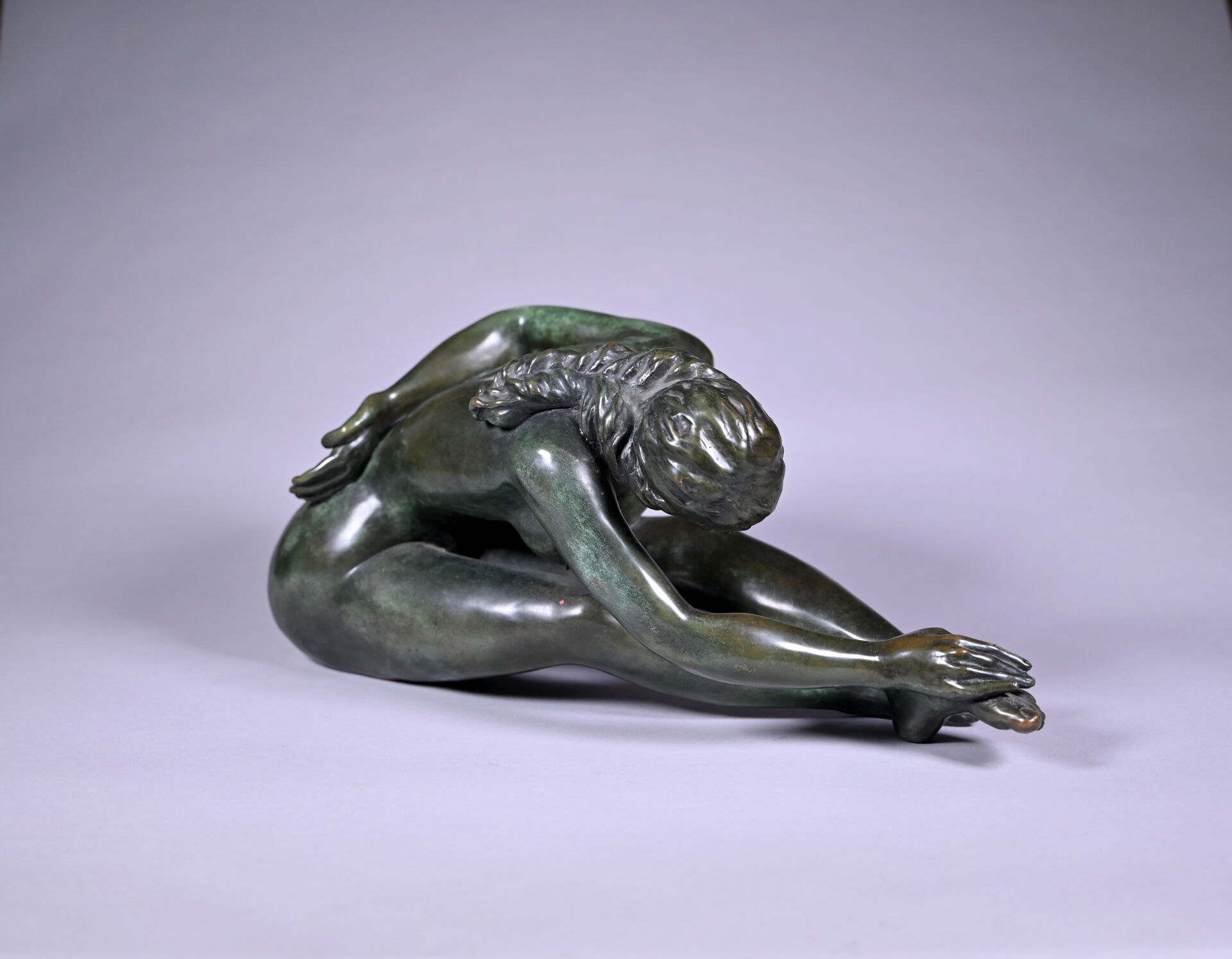Nicole GRADT (XXe siècle). Nu féminin assis les mains dans le dos. Bronze patiné vert signé et numéroté 1/8 sous le pied, fonte à la cire perdue. Haut. : 26 cm.