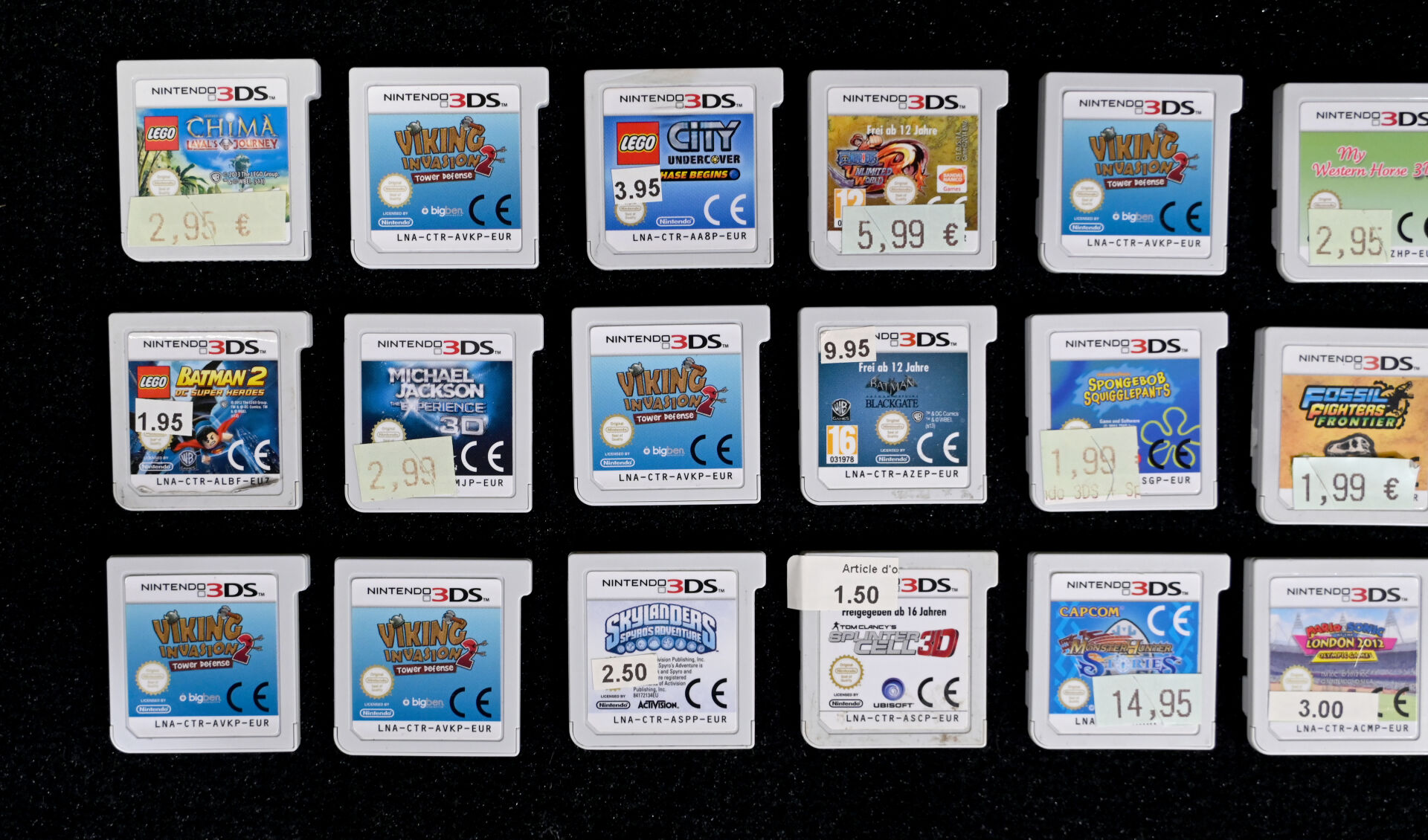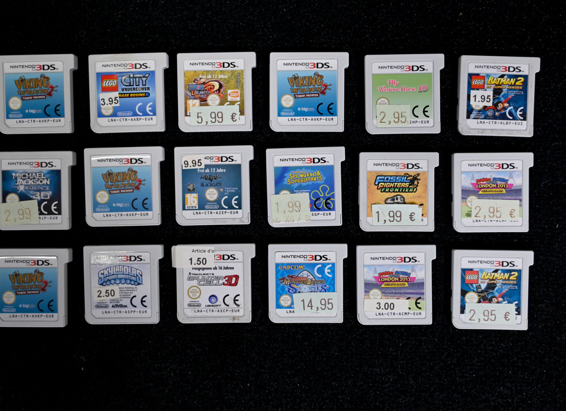 * NINTENDO – 3DS Ensemble de 15 jeux (sans boîte), dont un en quintuple et un en triple, dont : – MICKAEL JACKSON EXPERIENCE 3D – BATMAN 2 – ONE PIECE UNLIMITED WORLD – MONSTER HUNTER STORIES…