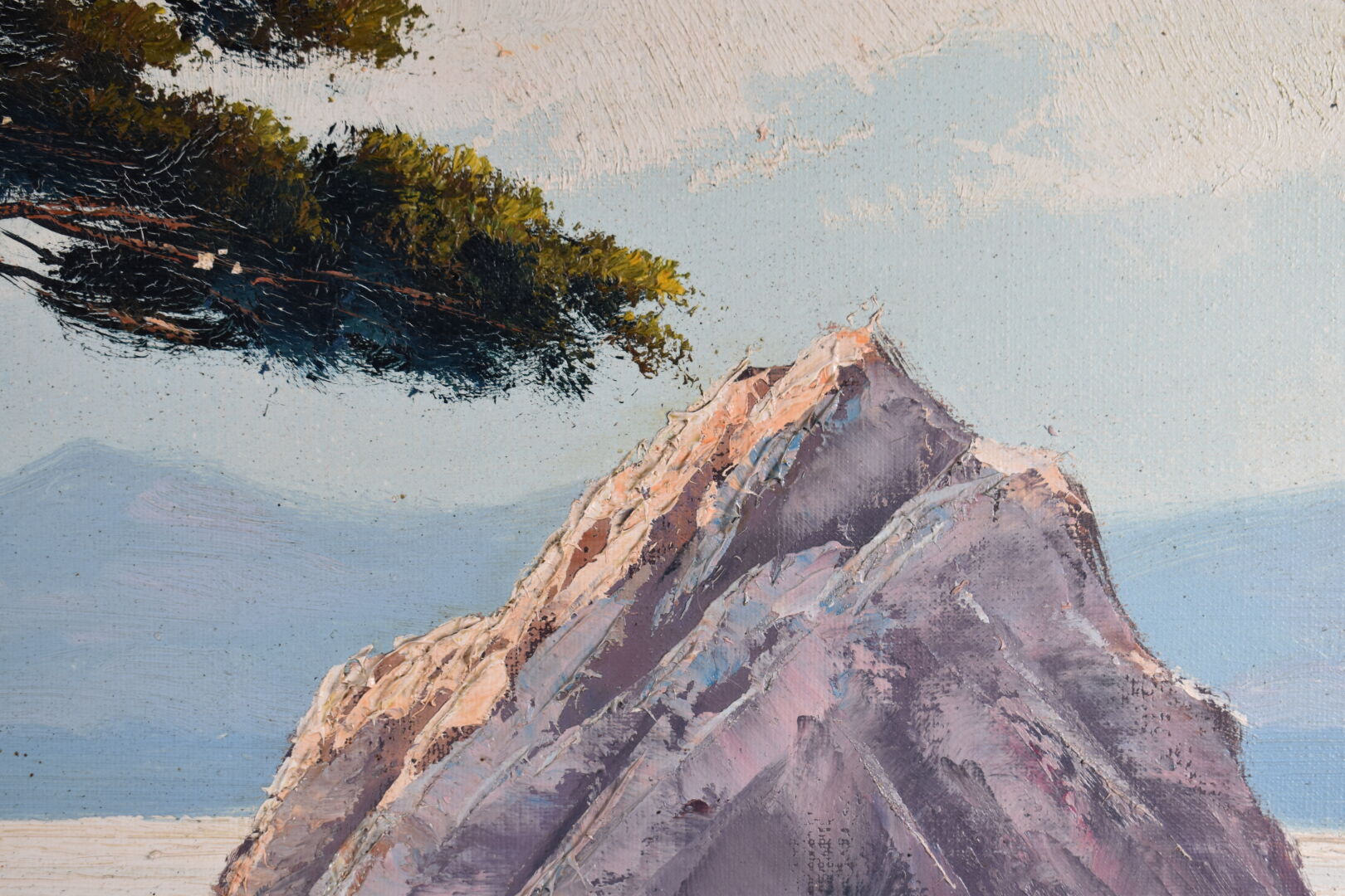 NORMAND (XXe siècle). Bord de mer en méditerranée. Huile sur toile signée en bas à droite (petits manques). 50 x 100 cm.