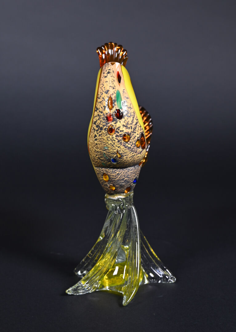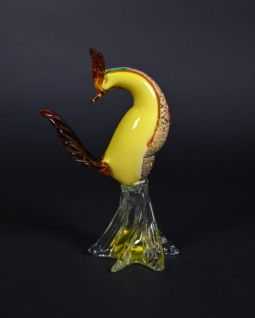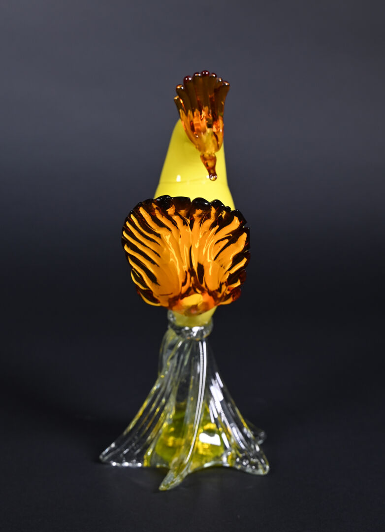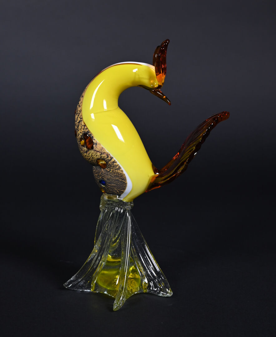 Oiseau en verre à dominante jaune orangé. Murano, XXe siècle. Haut. : 27,5 cm.
