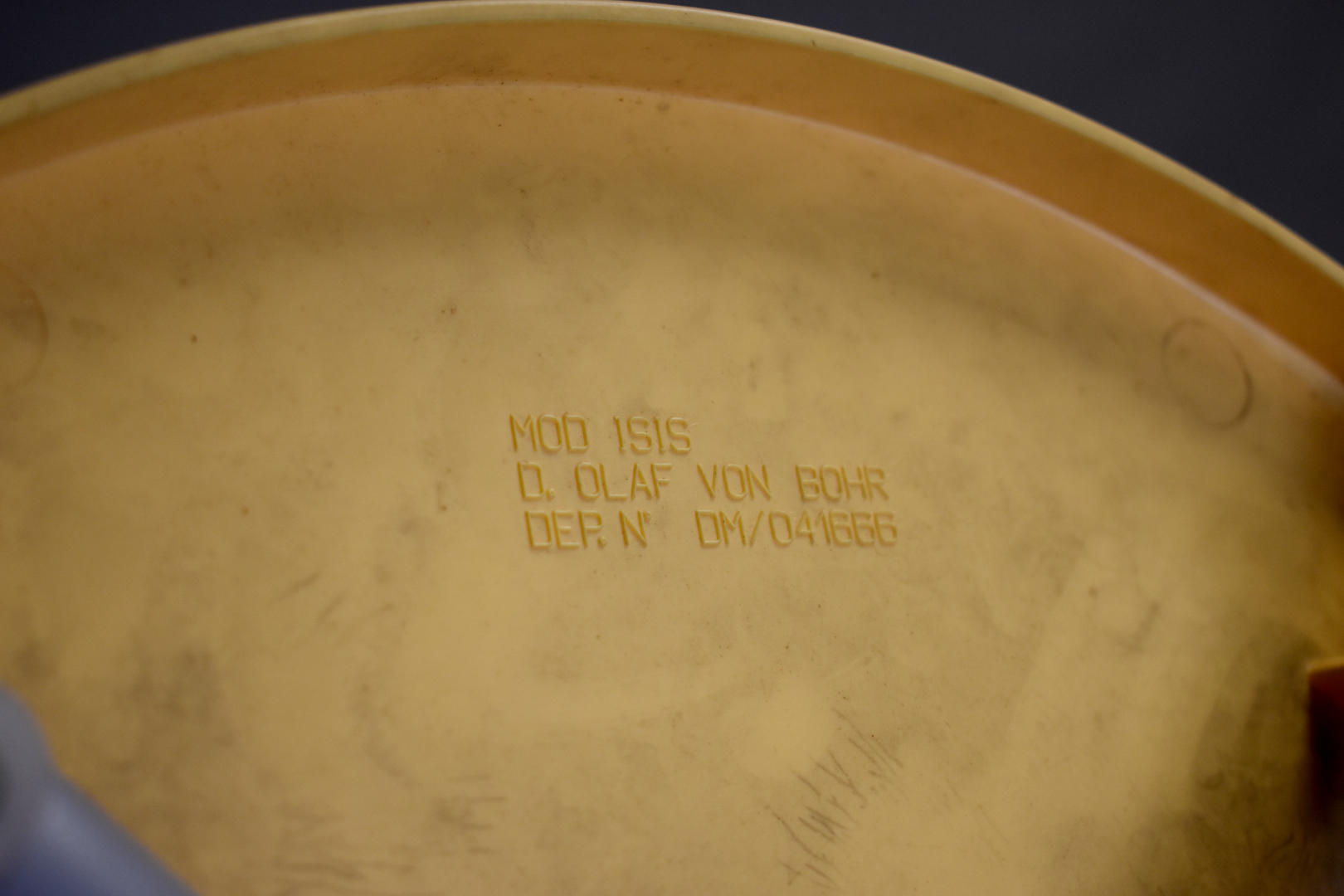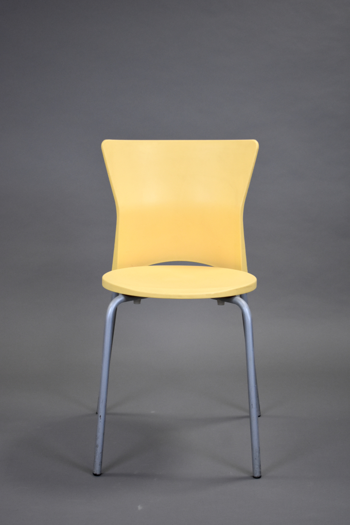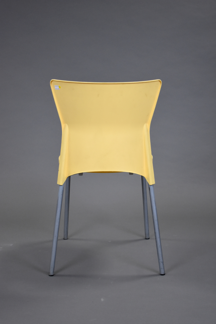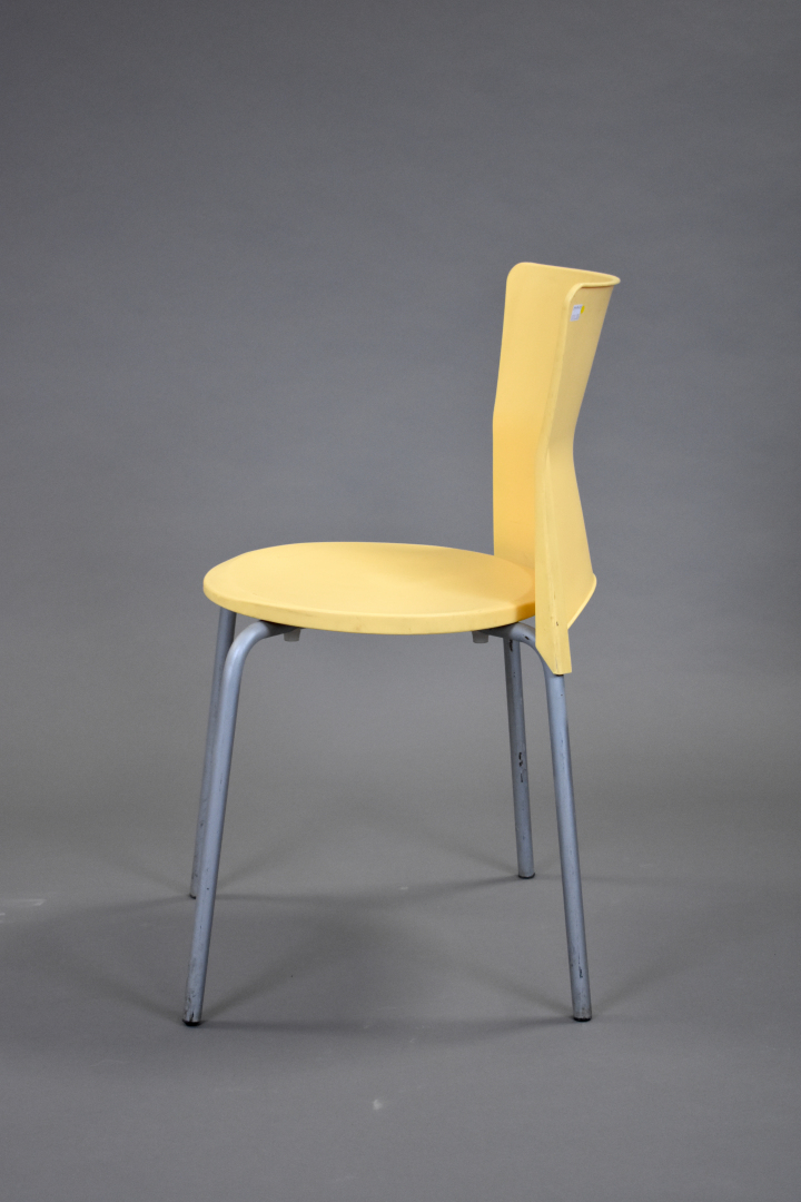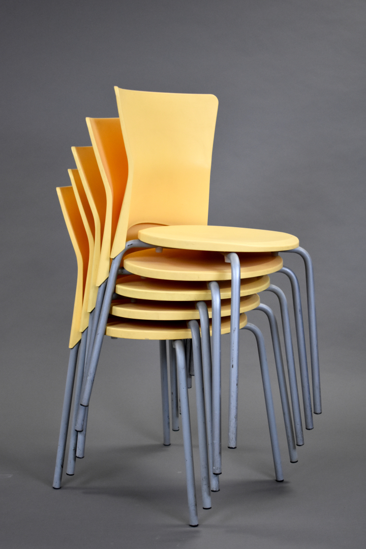 Olaf von BOHR (Né en 1927). Suite de 5 chaises en pvc jaune modèle isis. Marquées.
