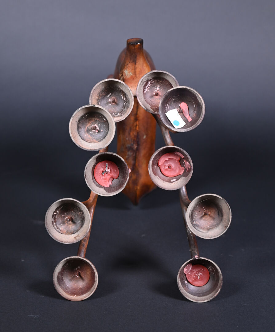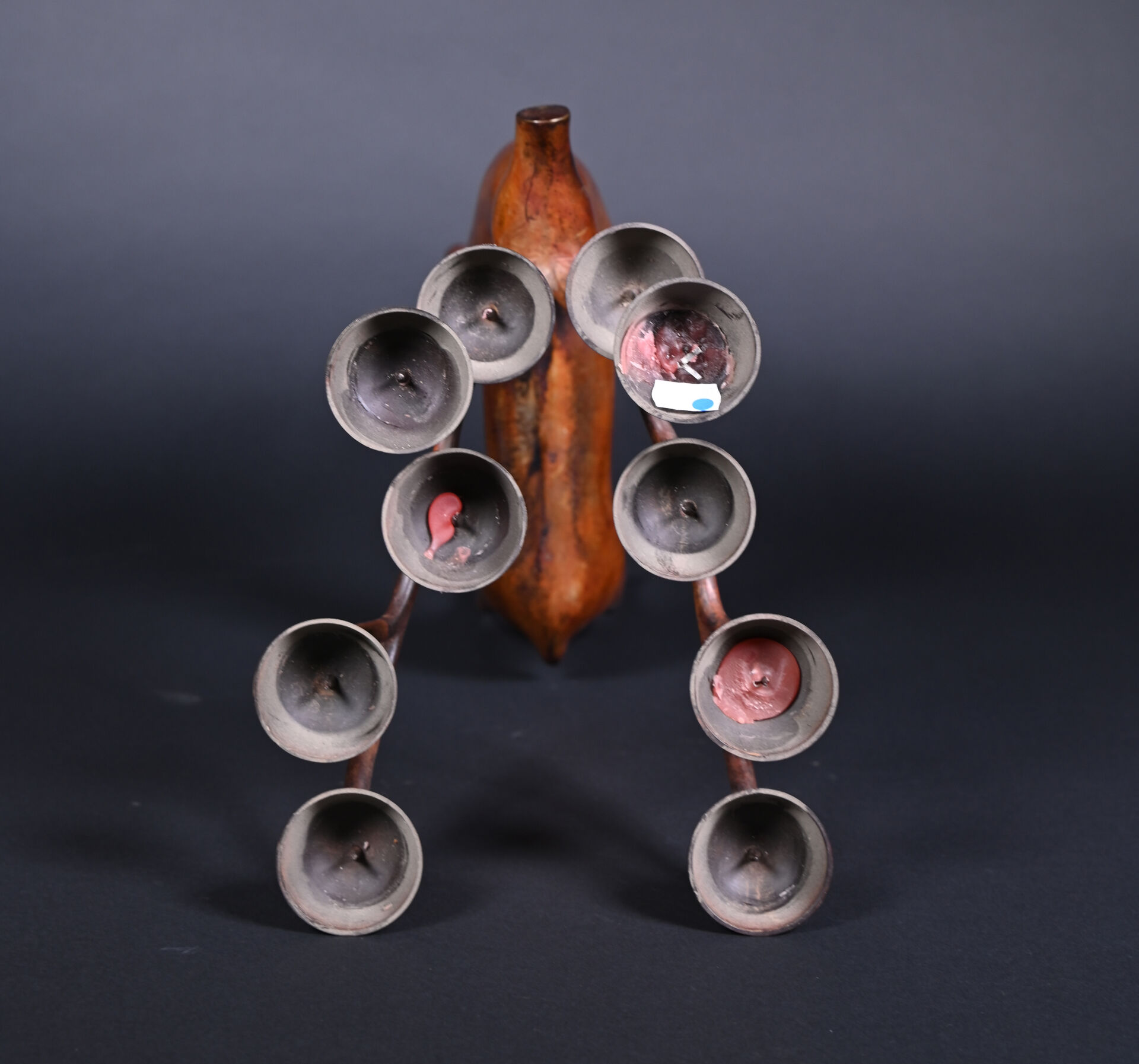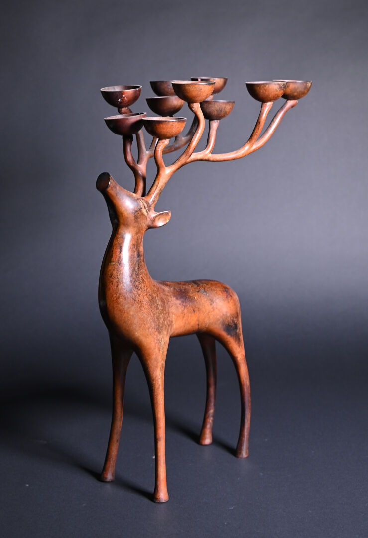 Paire de bougeoirs en bronze patiné médaille à 10 lumières représentant des cerfs, les bois abritant les bobèches. Seconde moitié du XXe siècle. Haut. : 53,5 cm.