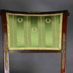Paire de chaises à dossiers renversés en bois teinté. Garniture de satin vert. Style Empire, XXe siècle.