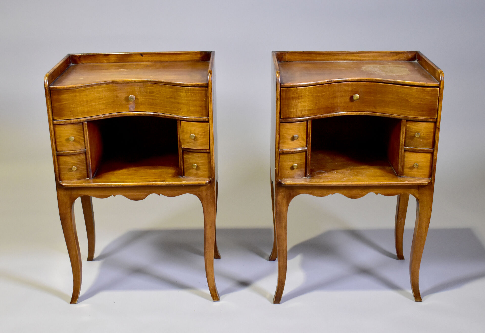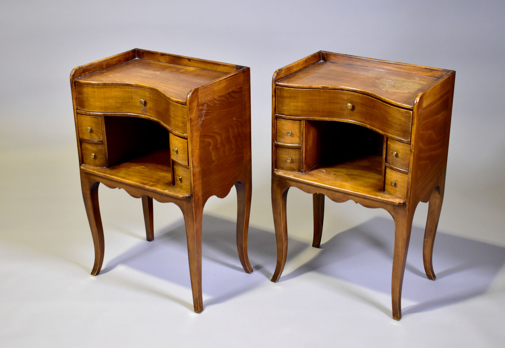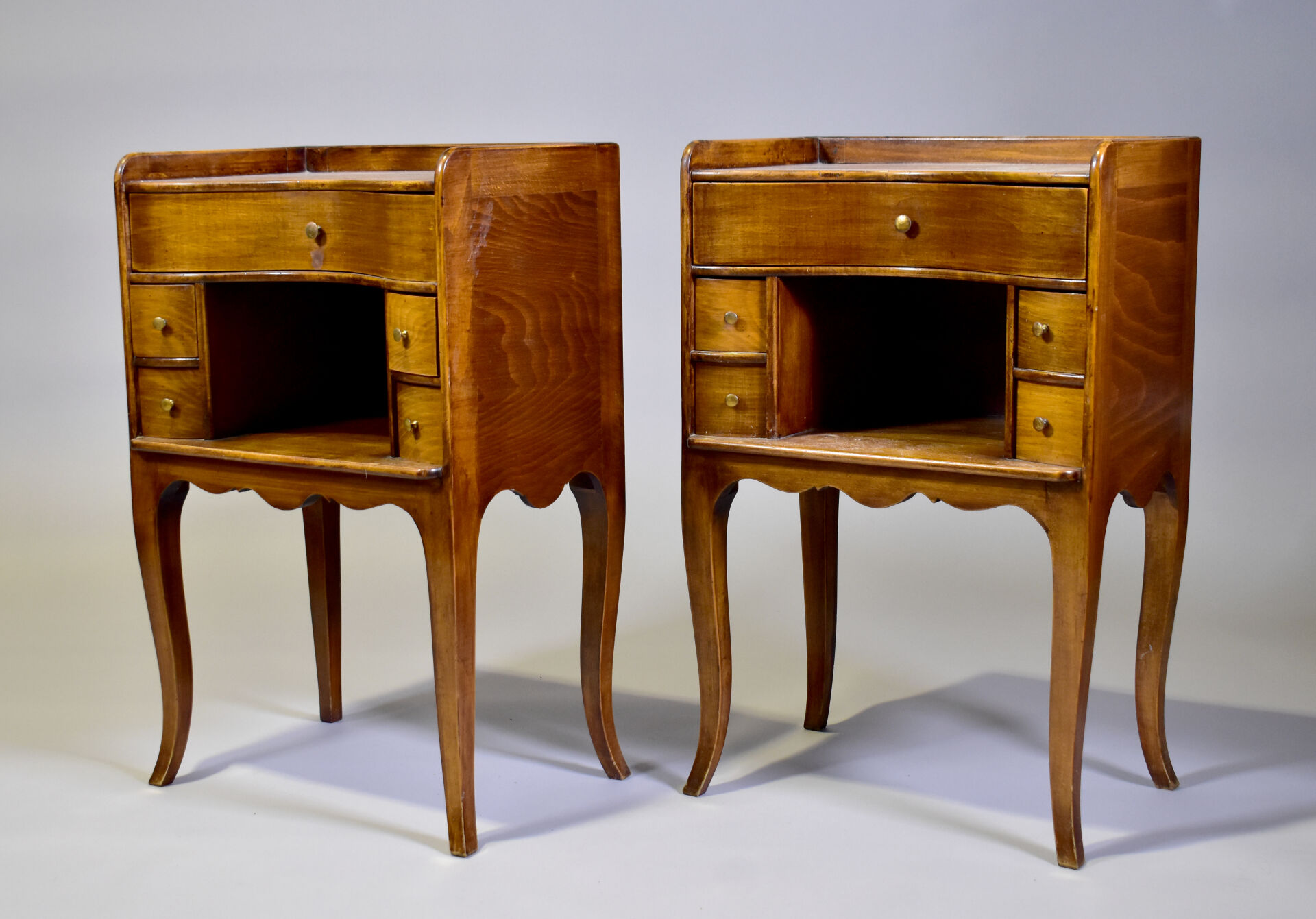 Paire de chevets en noyer à façade courbe. Style Louis XV.