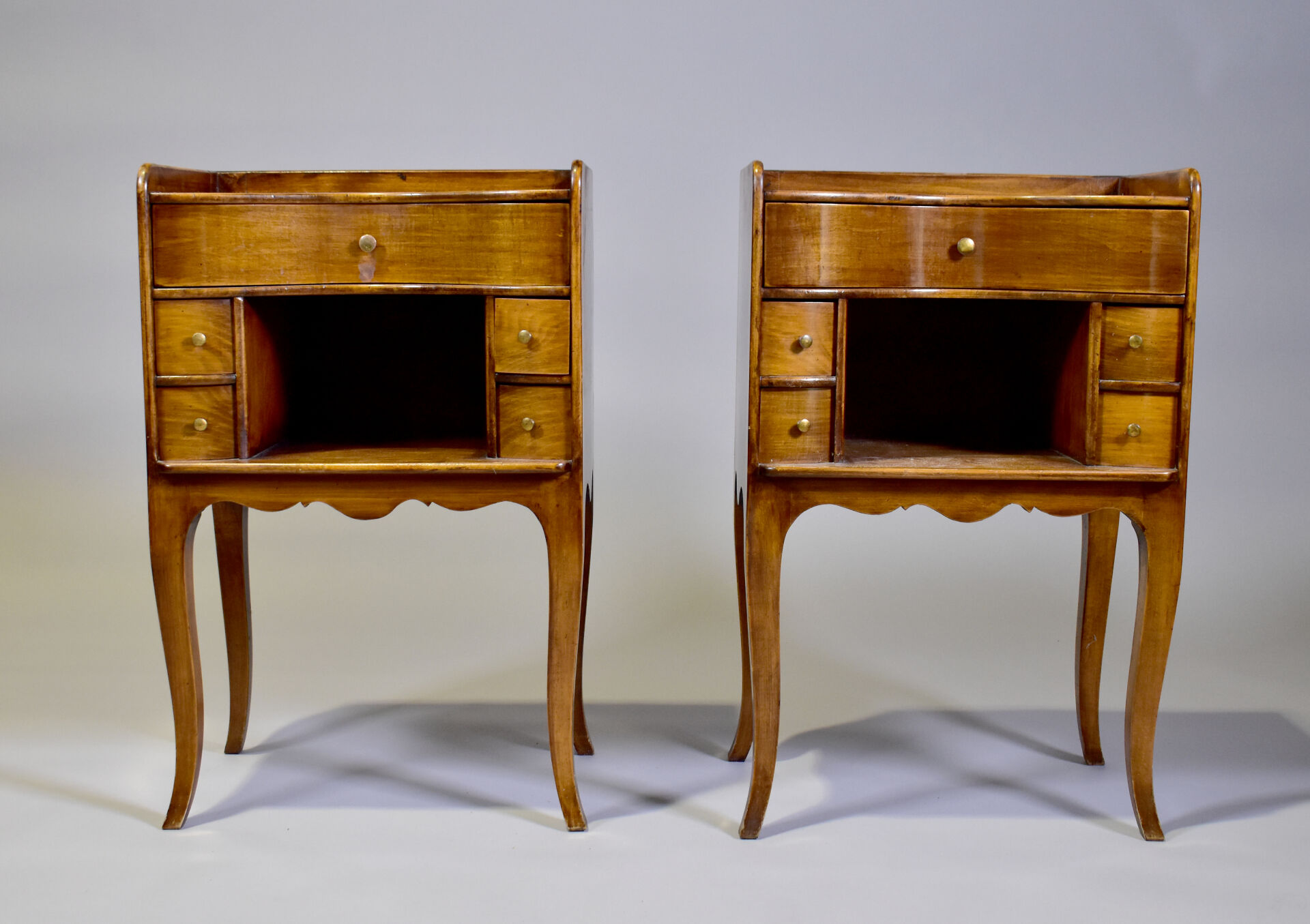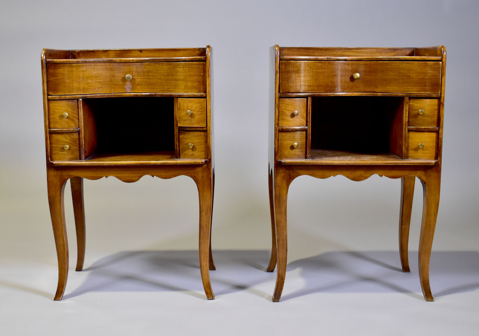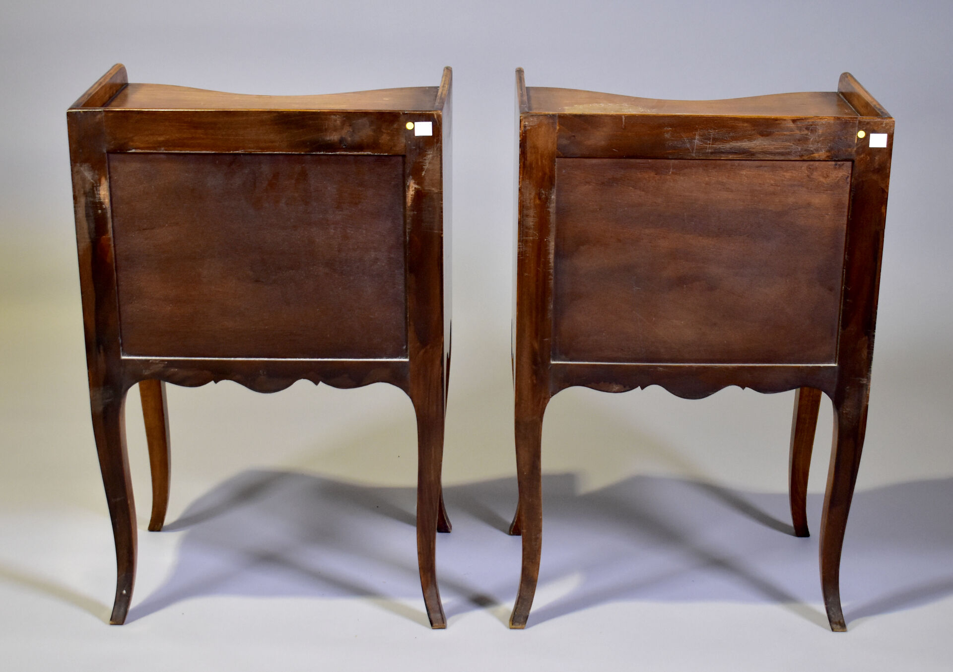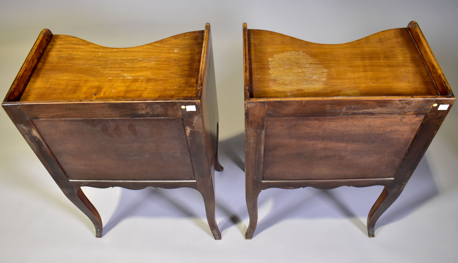 Paire de chevets en noyer à façade courbe. Style Louis XV.