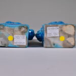 Paire de chiens de phö en céramique émaillée bleu turquoise. Cachet au dessous. Chine, XXe siècle. Haut. : 15,5 cm.