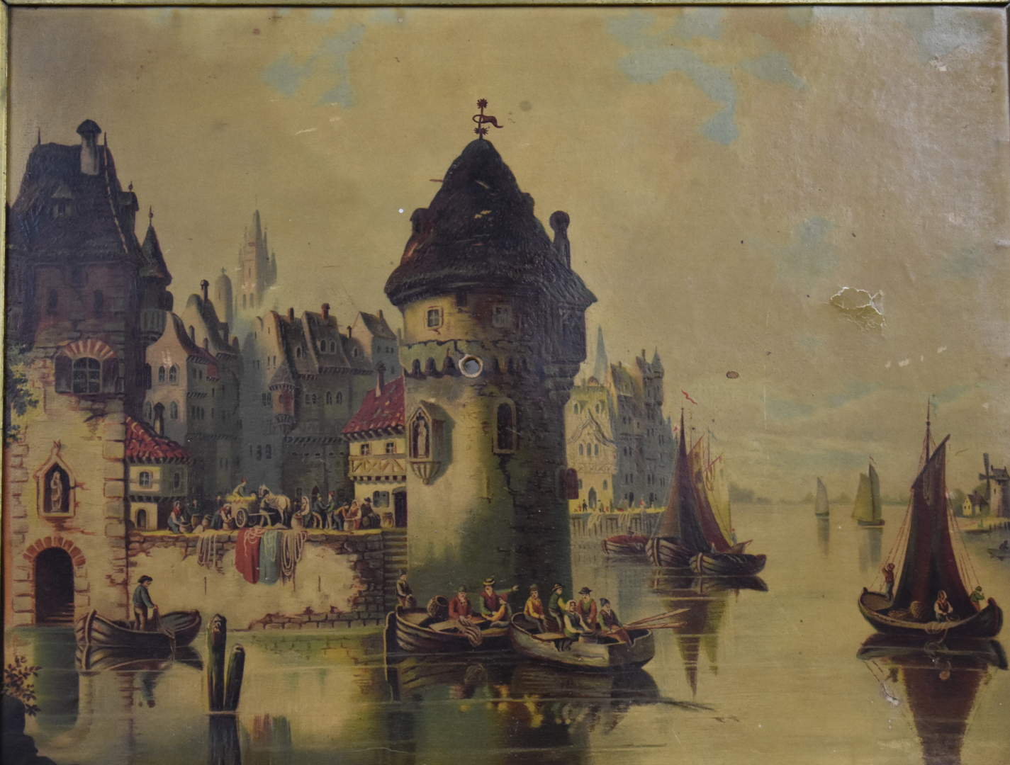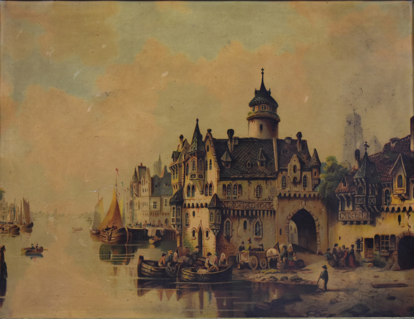 Paire de chromographies représentant des chateaux bavarois (accidents, percées, gondolé). 39 x 49 cm et 37,5 x 49 cm.