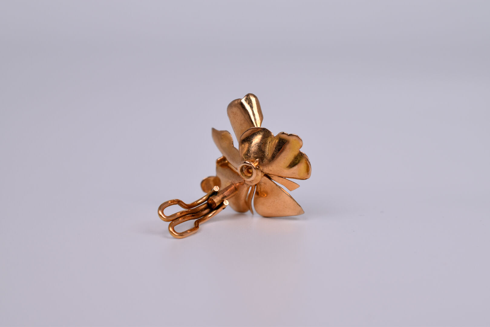 Paire de clips d’oreilles en forme de fleurs en or jaune 18K 750/1000e. Poids : 10,40 g.
