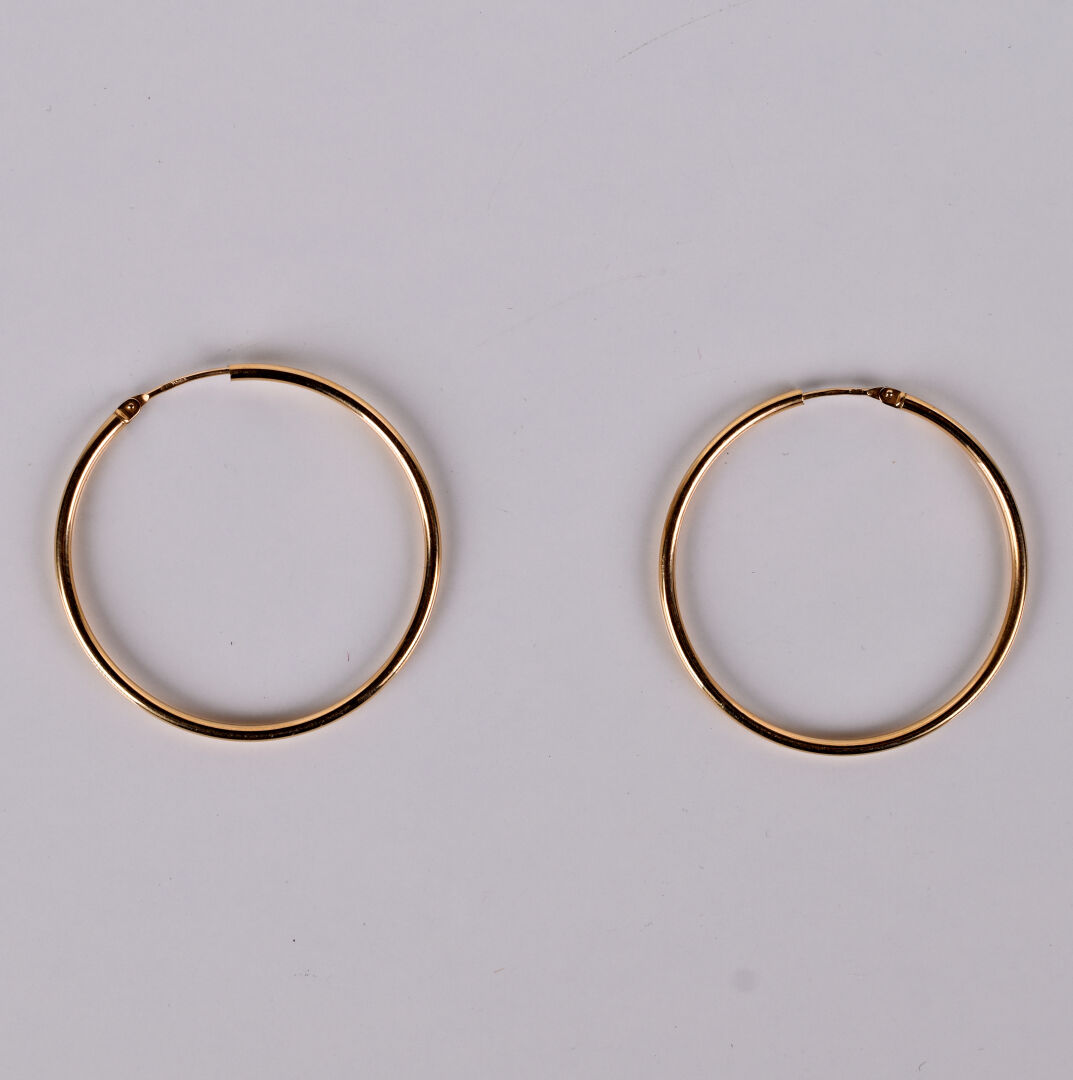 Paire de créoles en or jaune 18K 750/1000e. Poids. : 2,38 g.