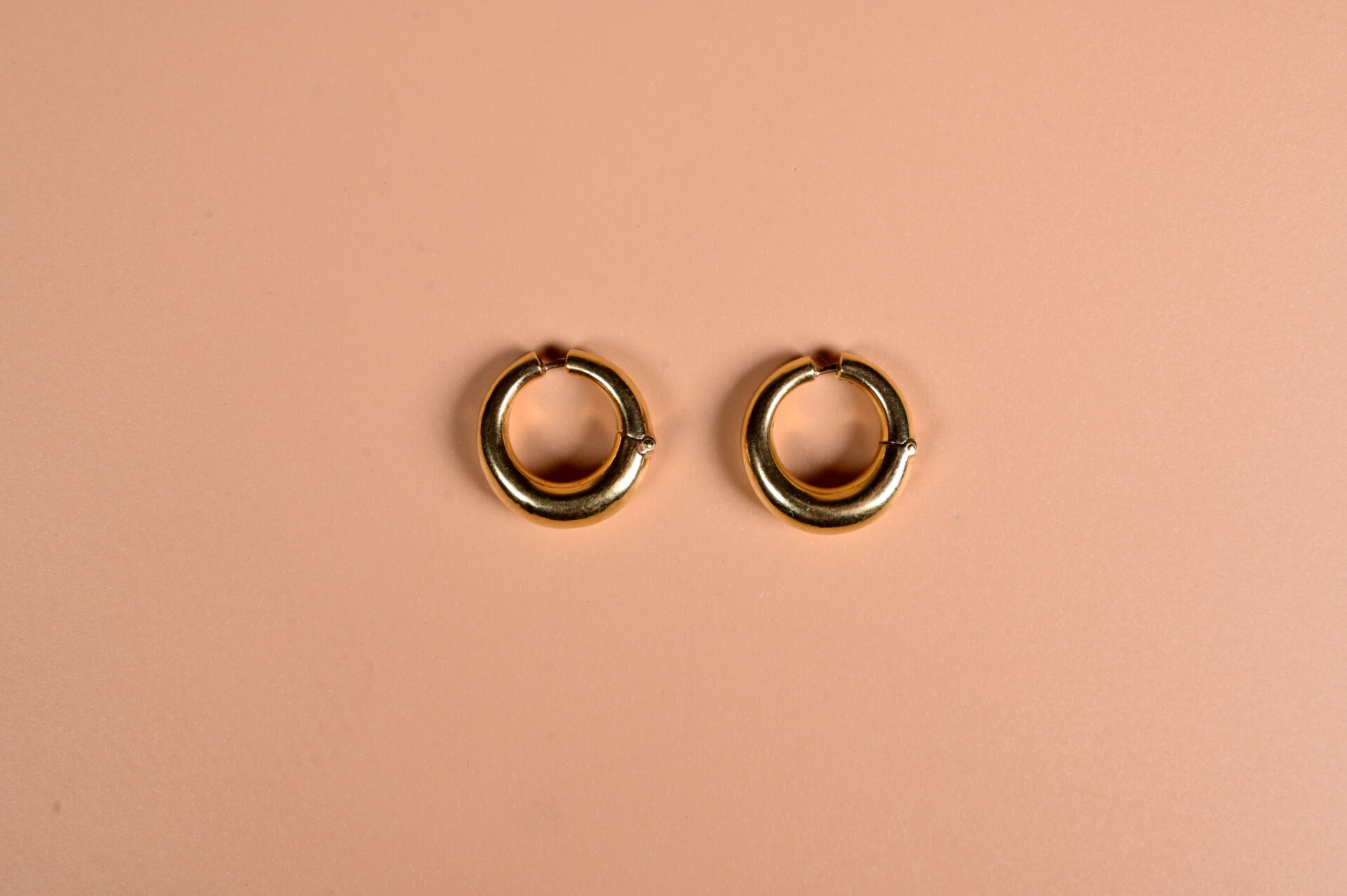 Paire de petites créoles en or 18k 750/1000e (probable tige bas-titre à l’intérieur). Diam. : 2 cm. Poids brut. : 14,6 g.