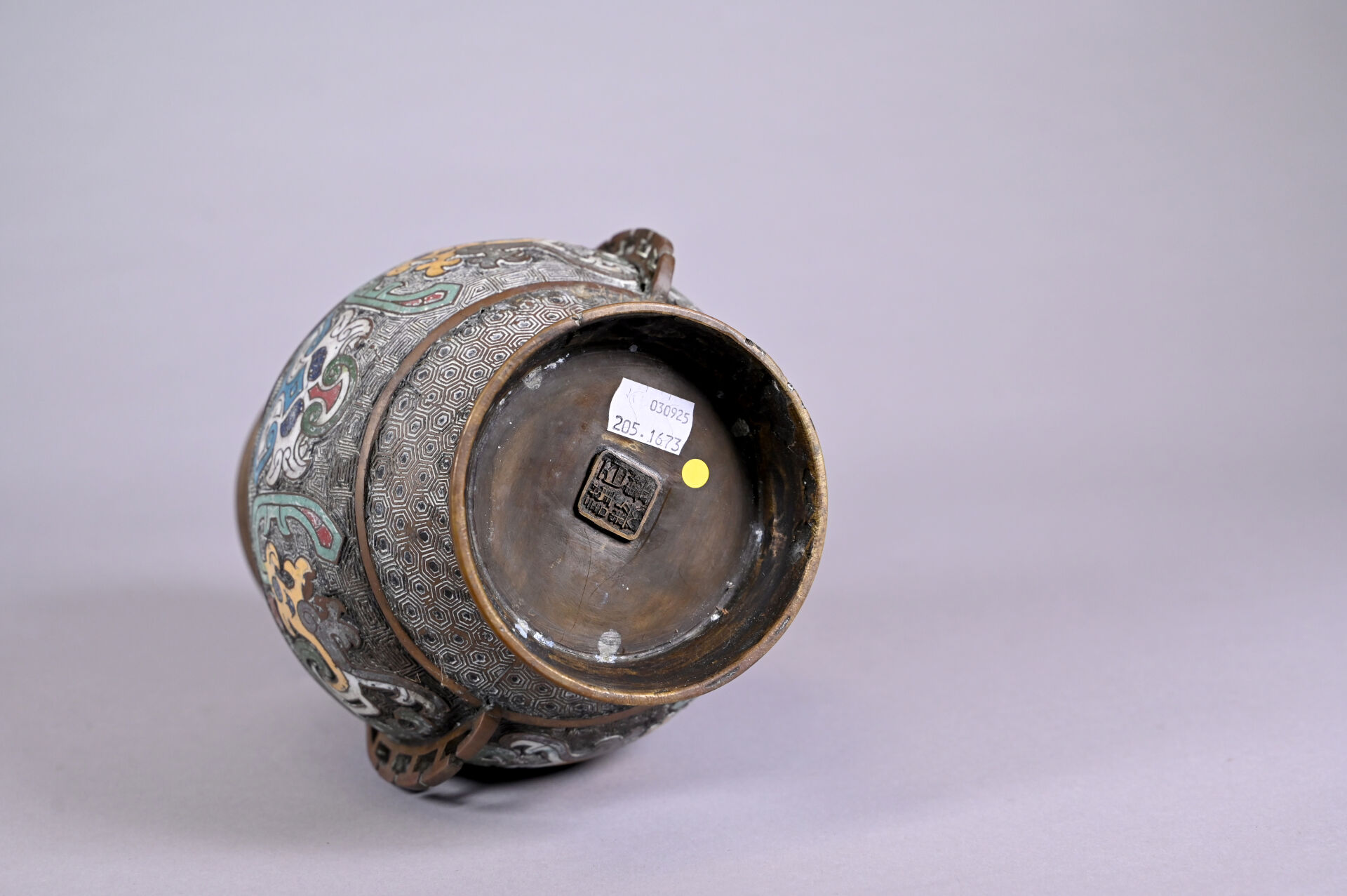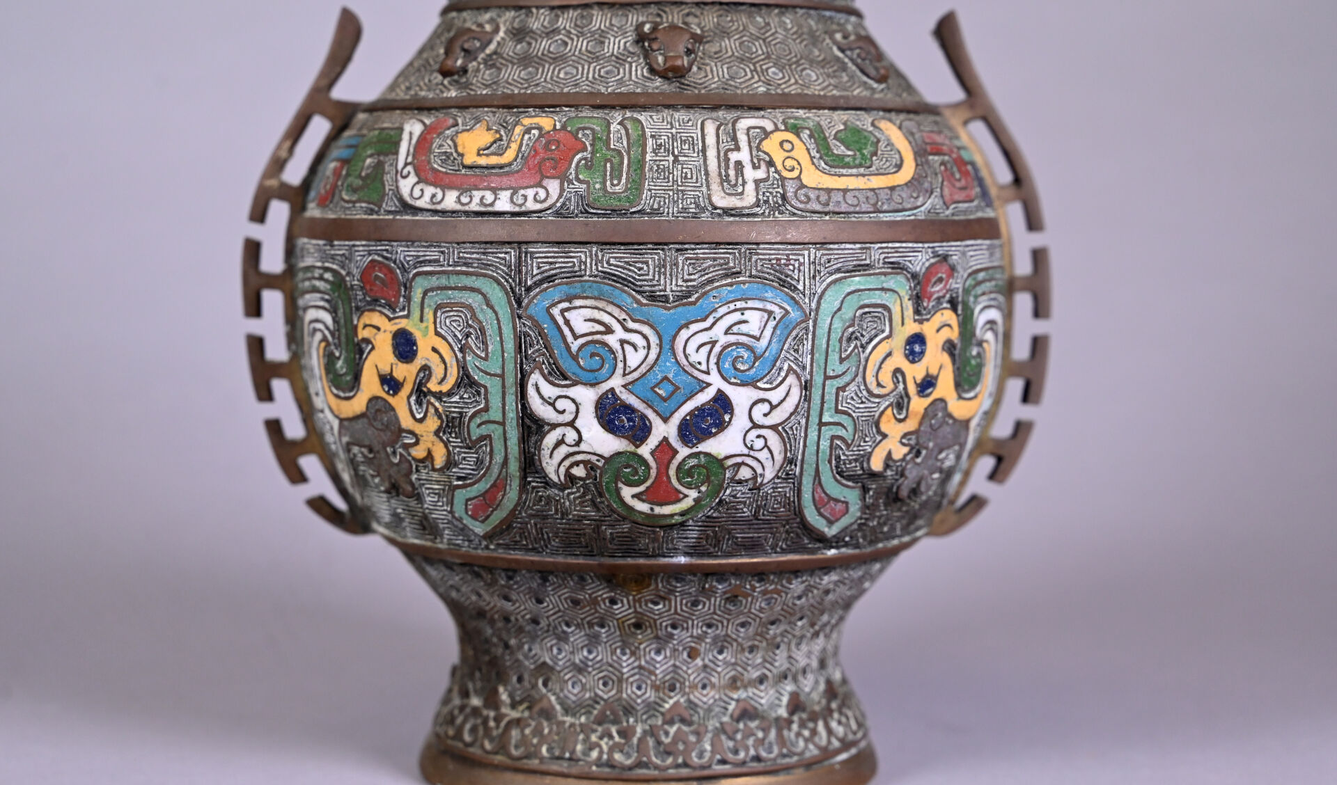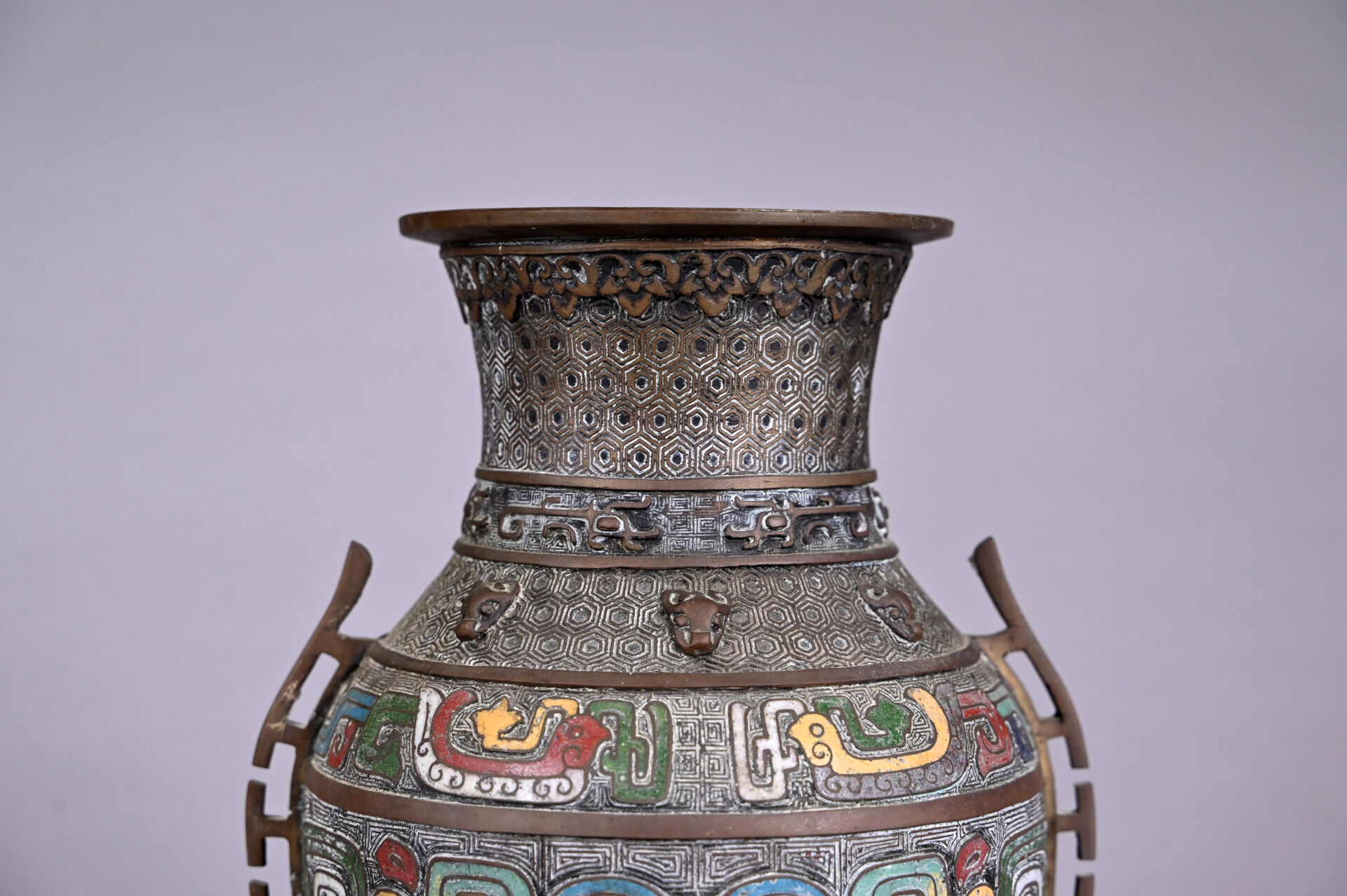 Paire de vases en bronze ciselé à décor en partie émaillé en cloisonné. Chine, fin du XIXe siècle ou début du XXe siècle. Haut. : 26 cm.