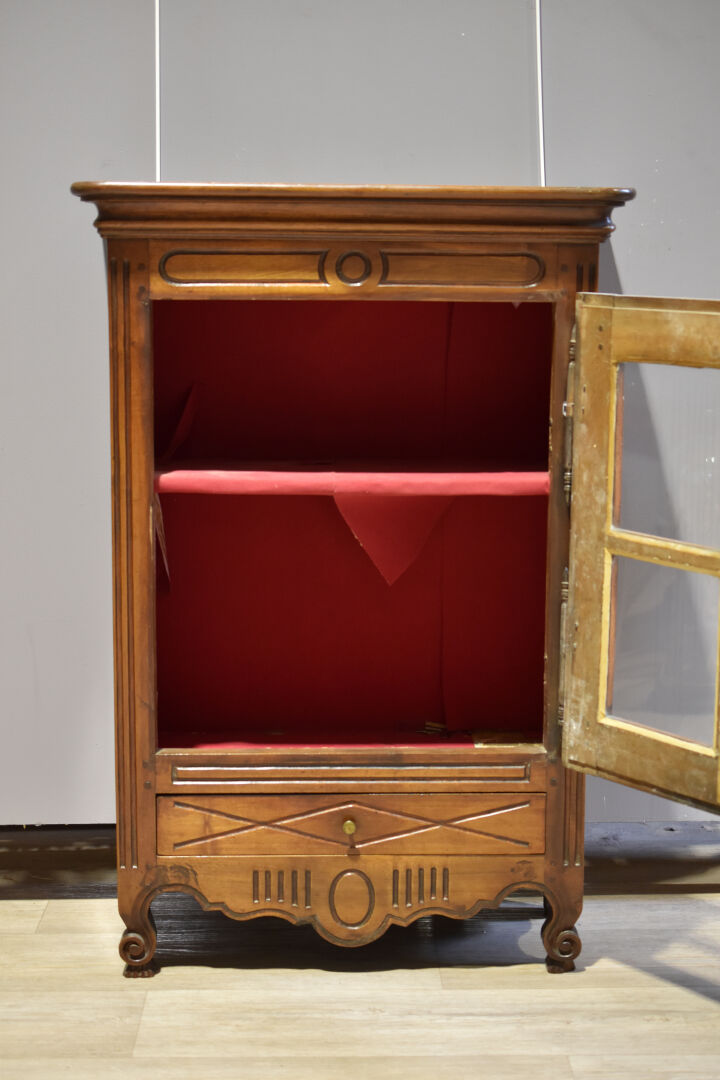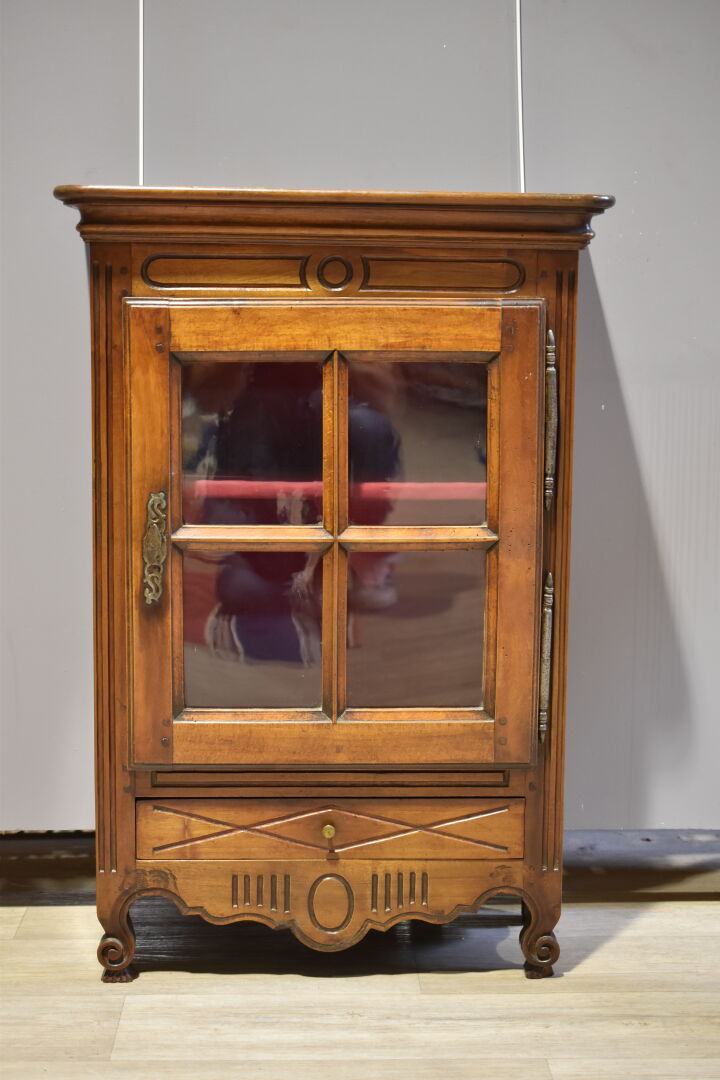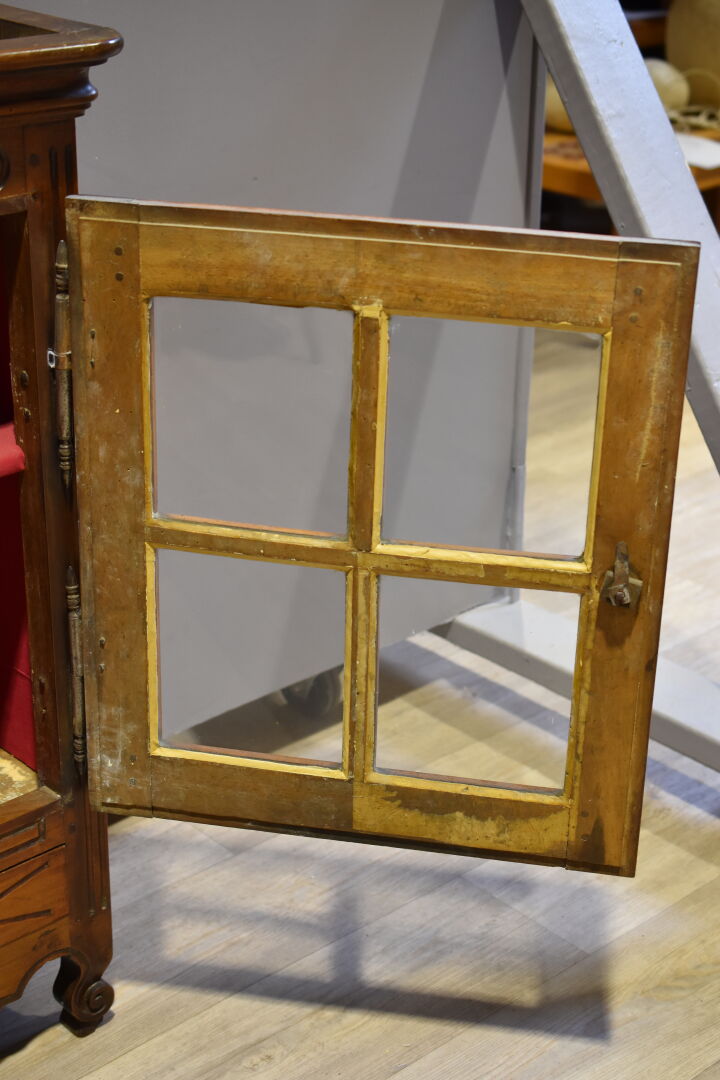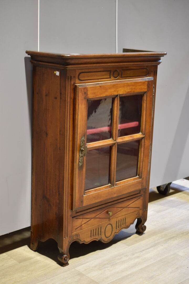 Panetière en bois fruitier teinté transformée en vitrine. Style Louis XV, XIXe siècle. Haut. : 100 cm – Larg. : 66 cm – Prof. : 27 cm.