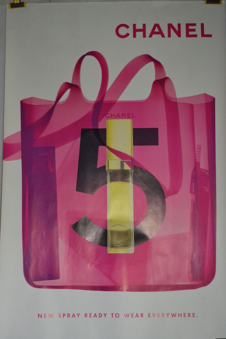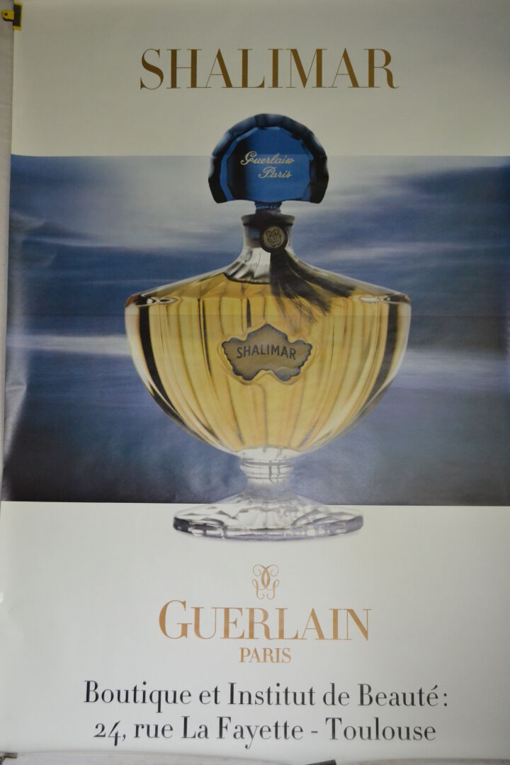 PARFUM. Ensemble de 5 affiches de parfum soit GUERLAIN SHALIMAR, GIVENCHY, CHANEL, CACHAREL. 175 x 120 (recto verso).