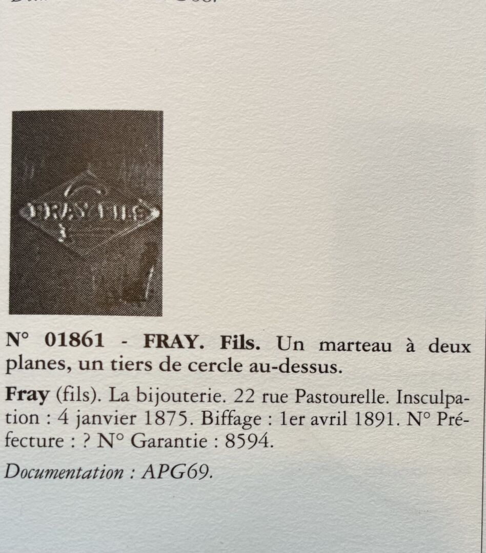 Orfèvre : FRAY ET FILS, reçu maître en 1875. N° de garantie 8594.