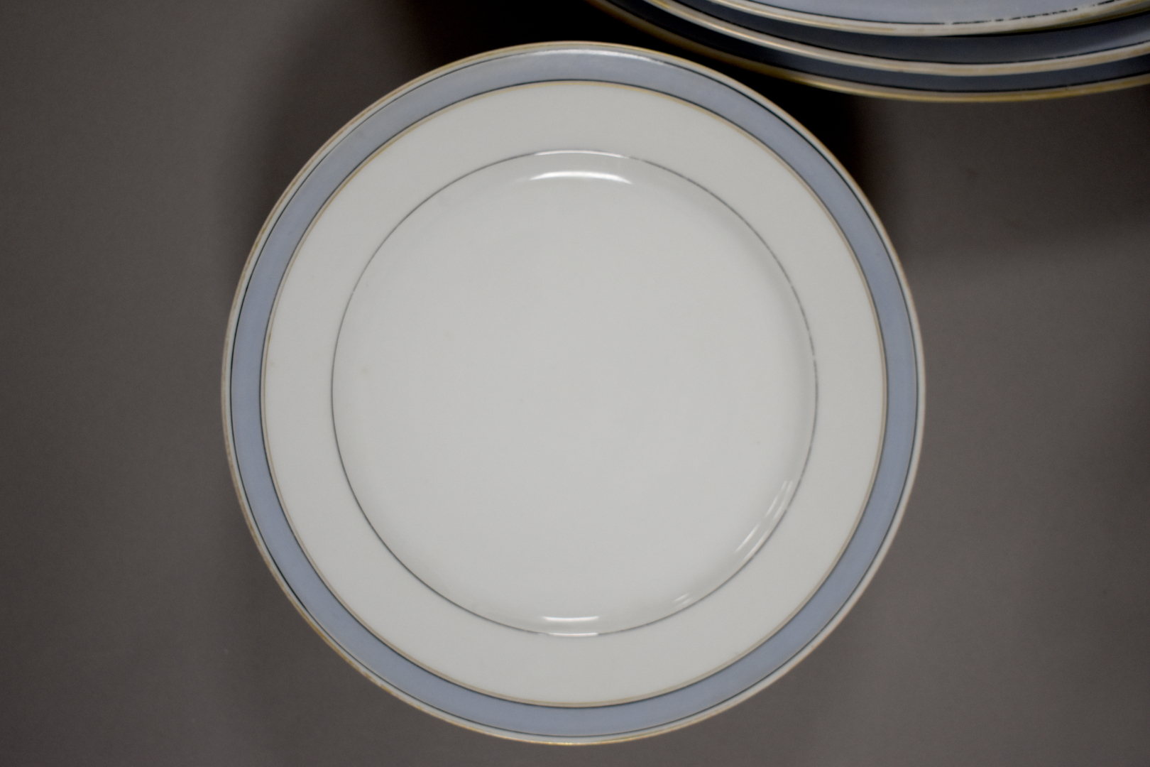 Partie de service en porcelaine blanche et liserre bleu. On joint quelques pièces en faïence et une partie de service à thé en porcelaine bavaroise.