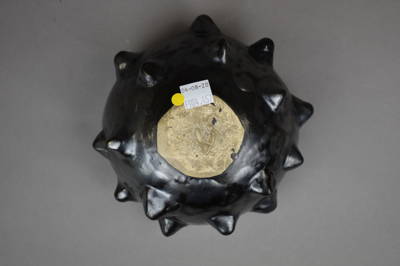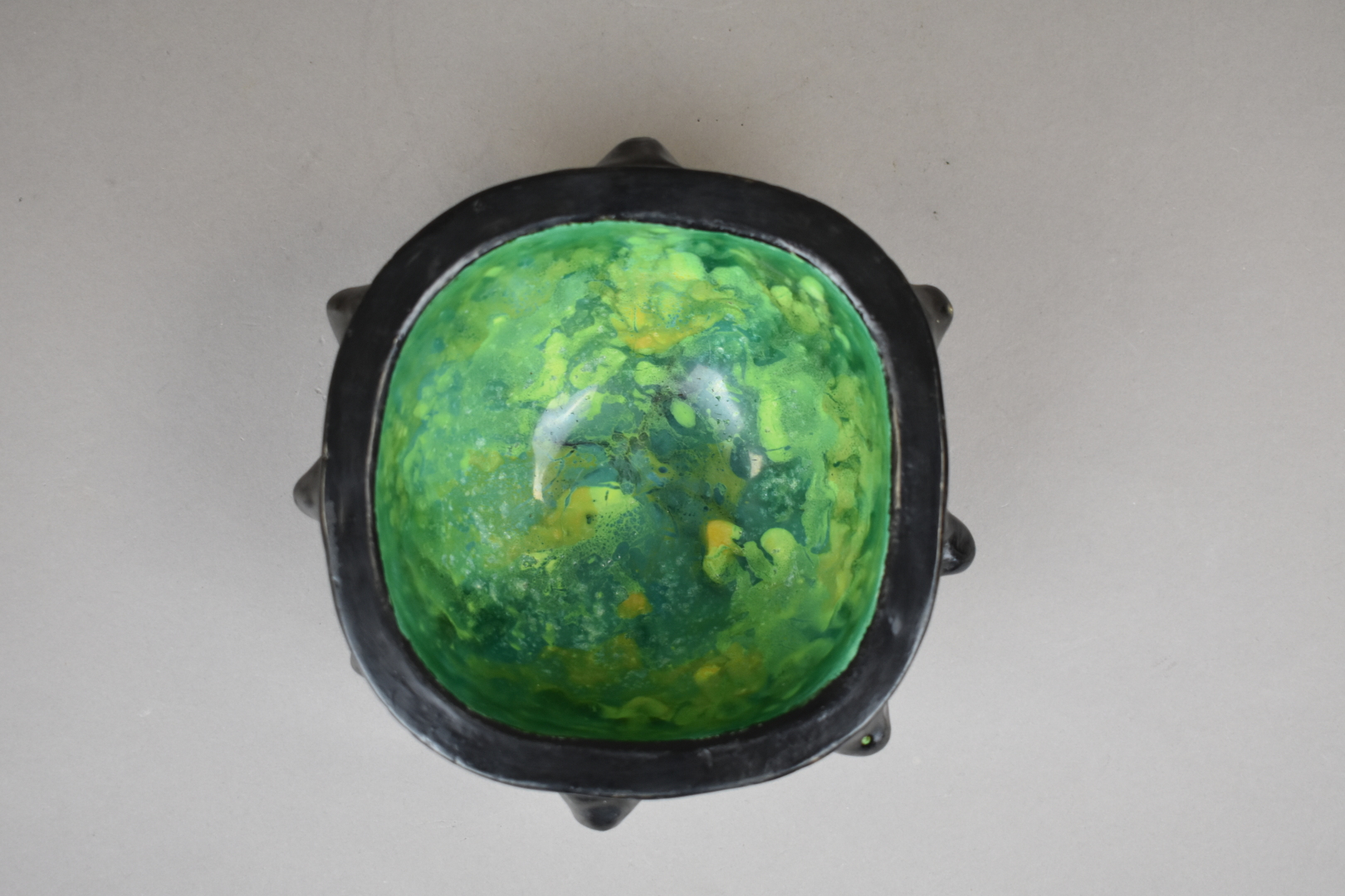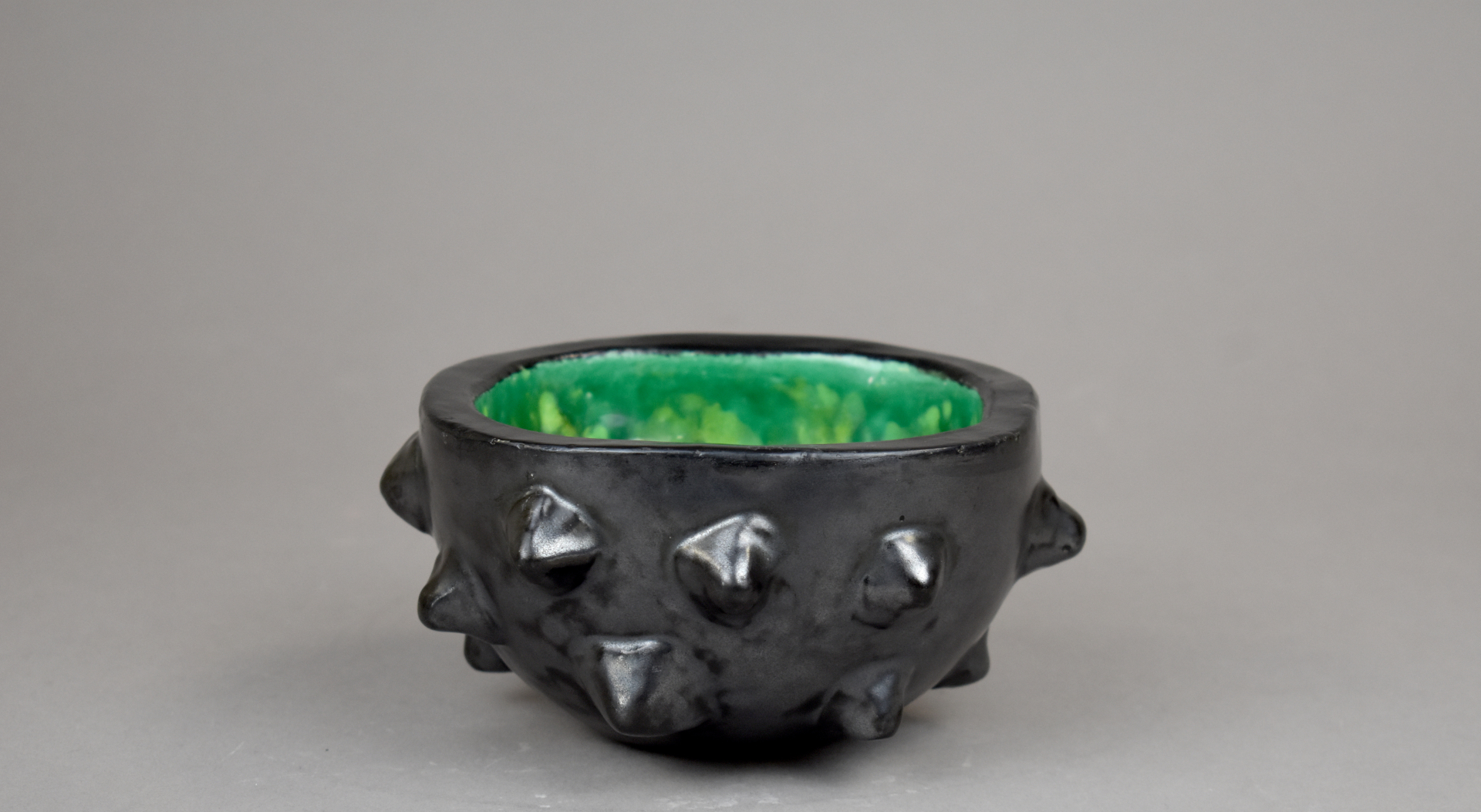 Paul BONIFAS (1893-1967). Petite coupe en céramique à pointe émaillée noir à reflets irisés à l’extérieur et vert à l’intérieur (une restauration). Haut. : 8 cm.