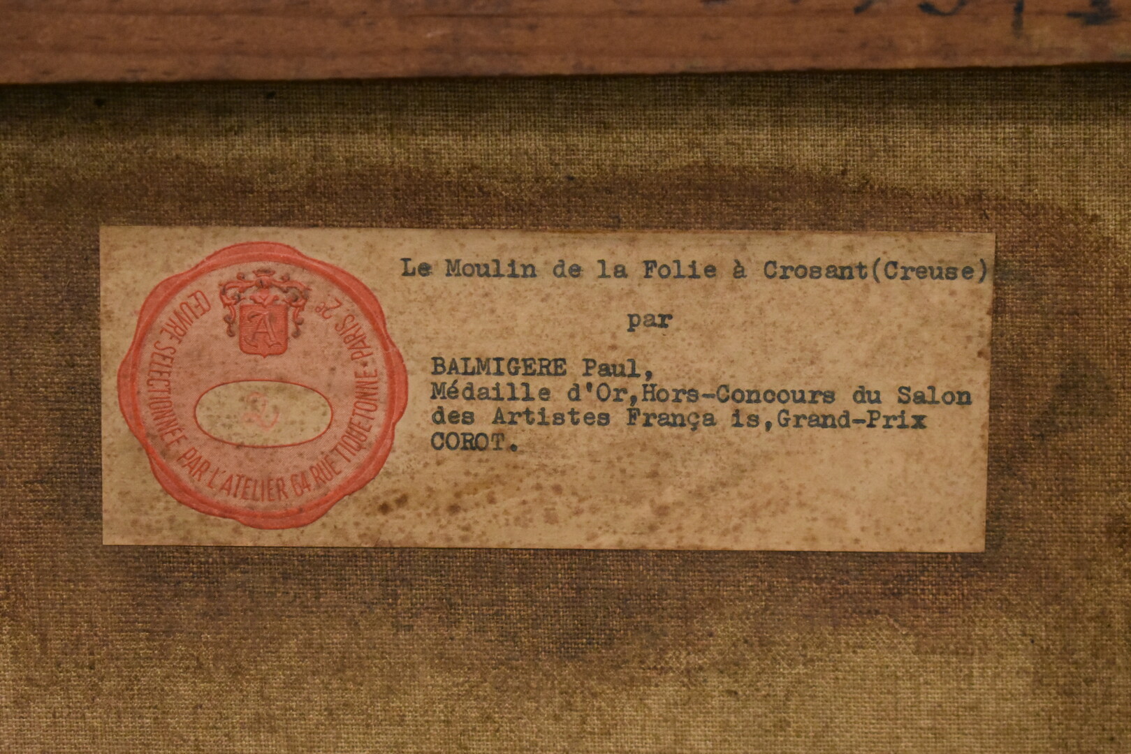 Paul Justin Marcel BALMIGERE (1882-1953). Le Moulin de la Folie à Crosant (Creuse). Huile sur toile signée en bas à gauche. 46 x 61 cm.