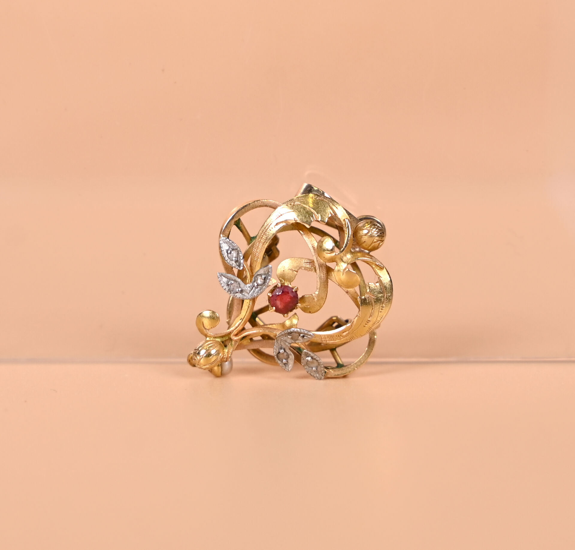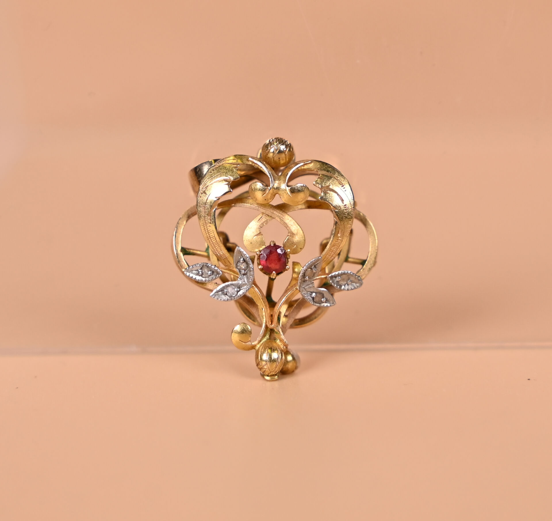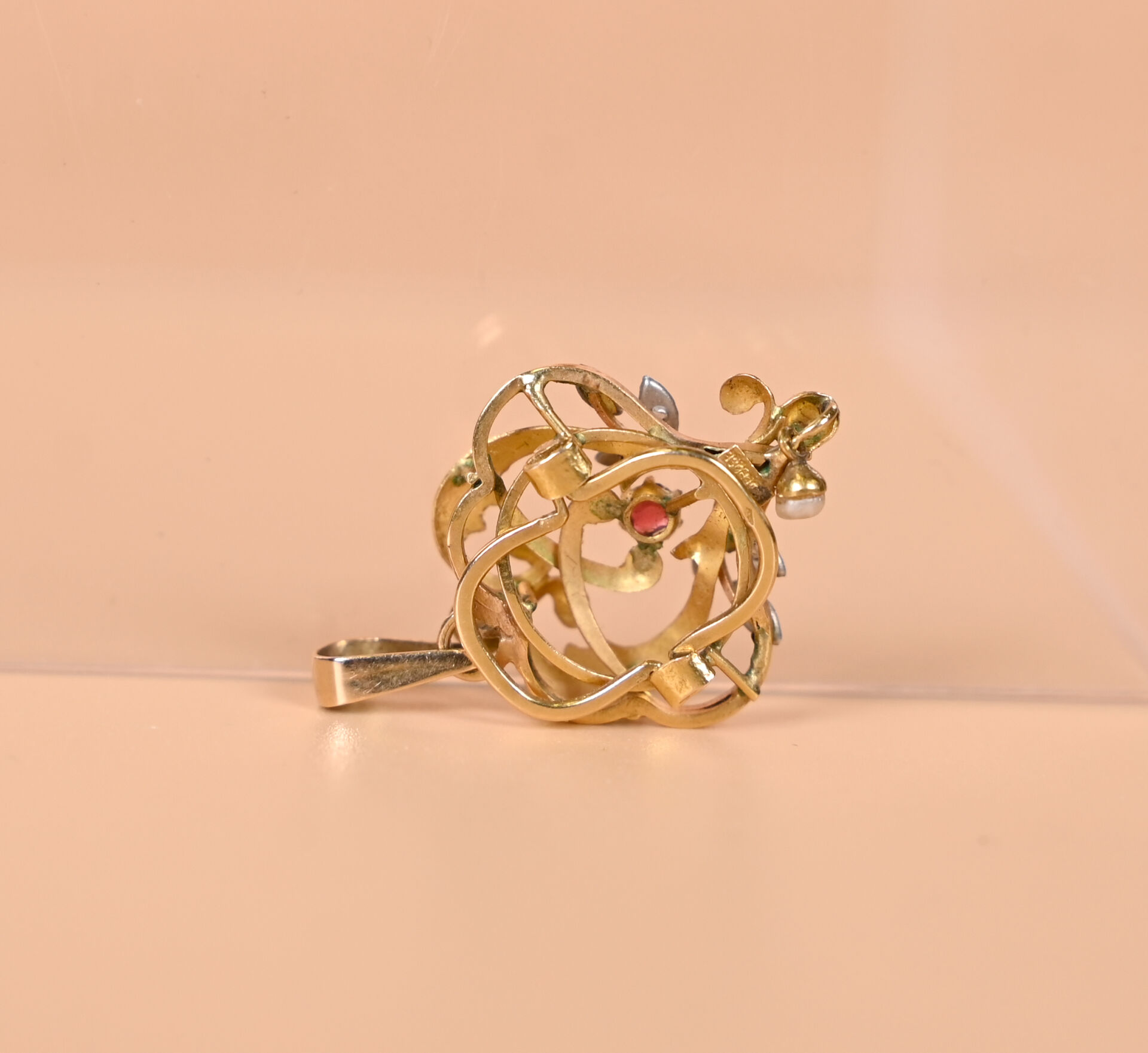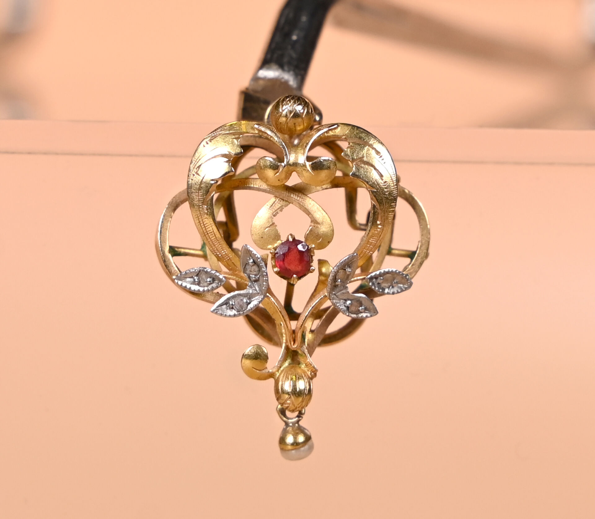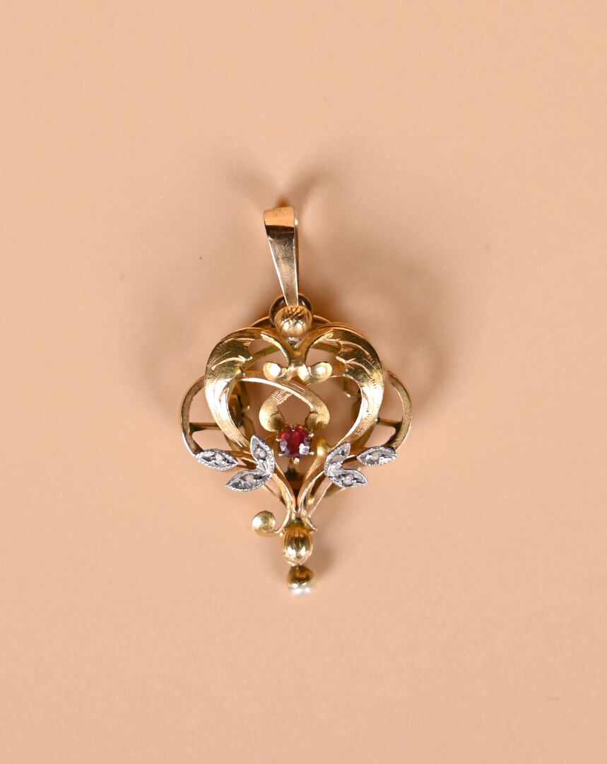 Pendentif Art Nouveau or et pierres. Poids brut : 2,2 g.