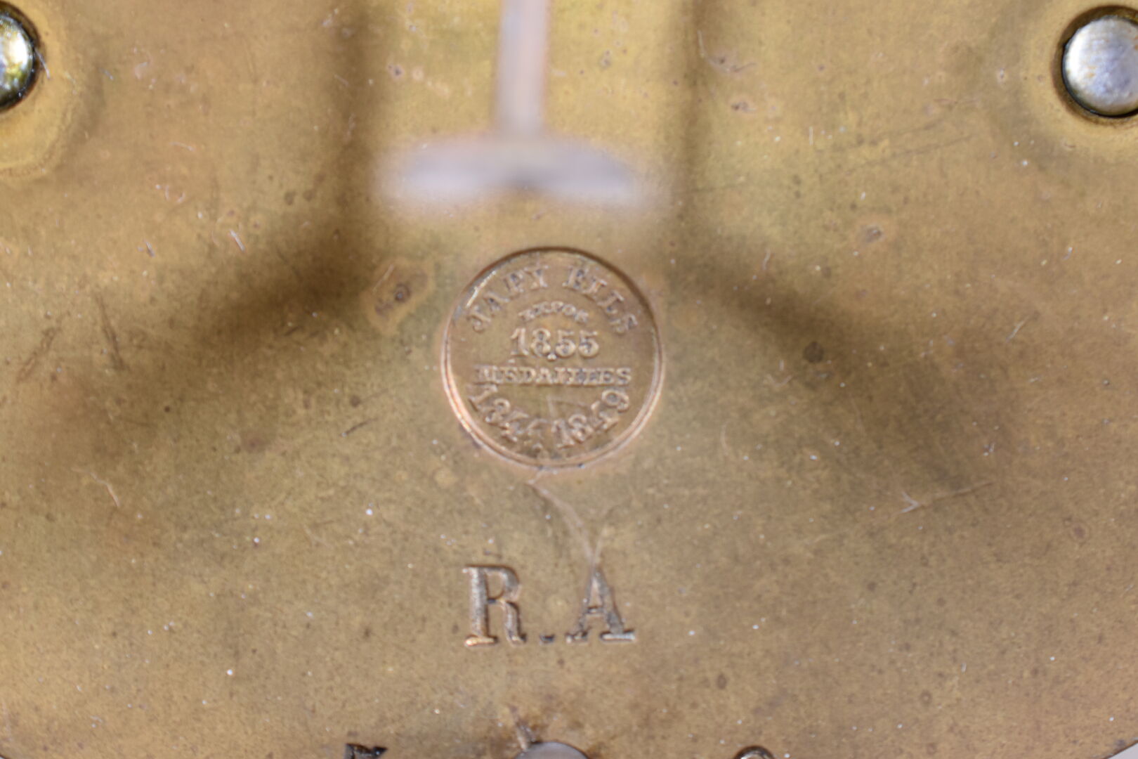 Pendule en albâtre et métal doré. Le cadran à chiffres romains, signé P.SOUCHET à Angoulême (égrenures et éclats). Première moitié du XXe siècle. Haut. : 38,5 cm. Avec clé et balancier.