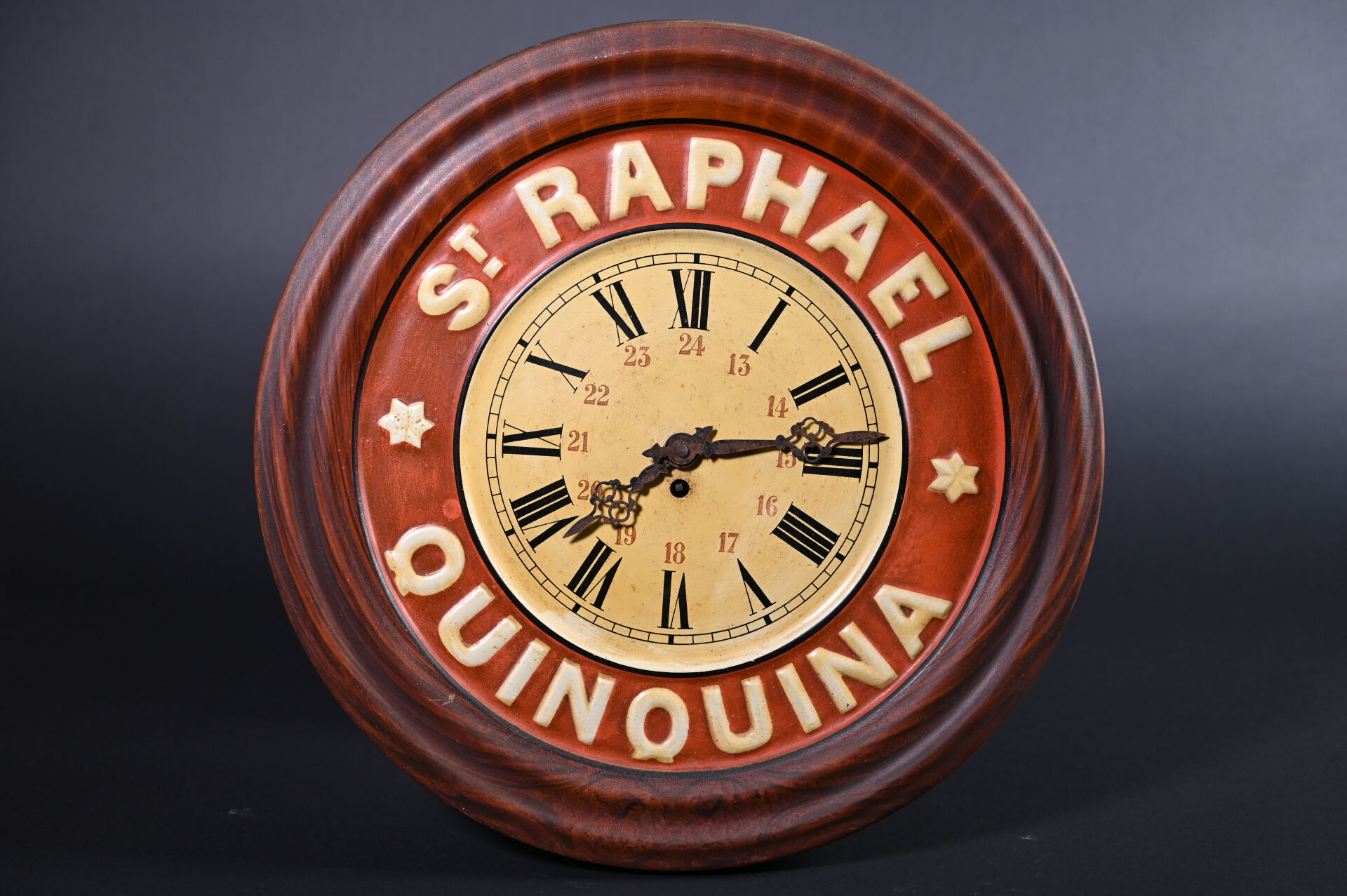 Pendule publicitaire St RAPHAEL QUINQUINA. Diam. : 48,5 cm.
