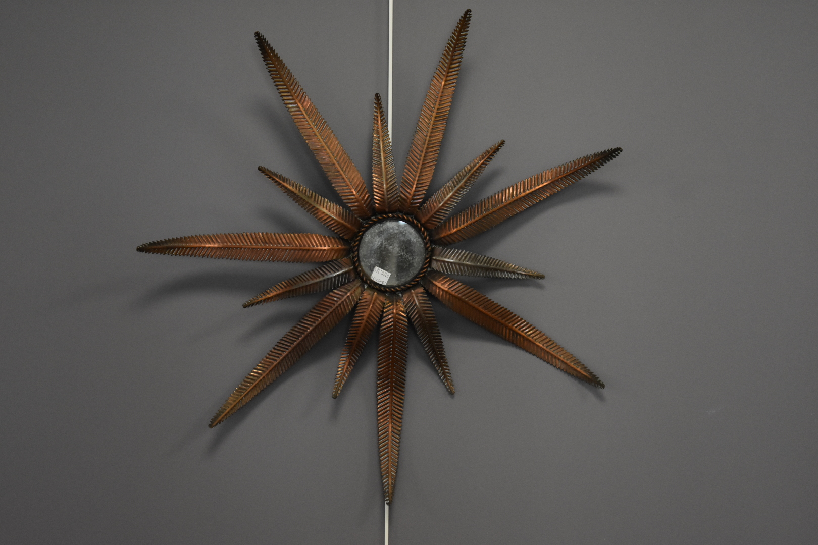 Petit miroir soleil en bronze anciennement doré. Milieu du XXe siècle. Diam. : 59 cm (avec branches).