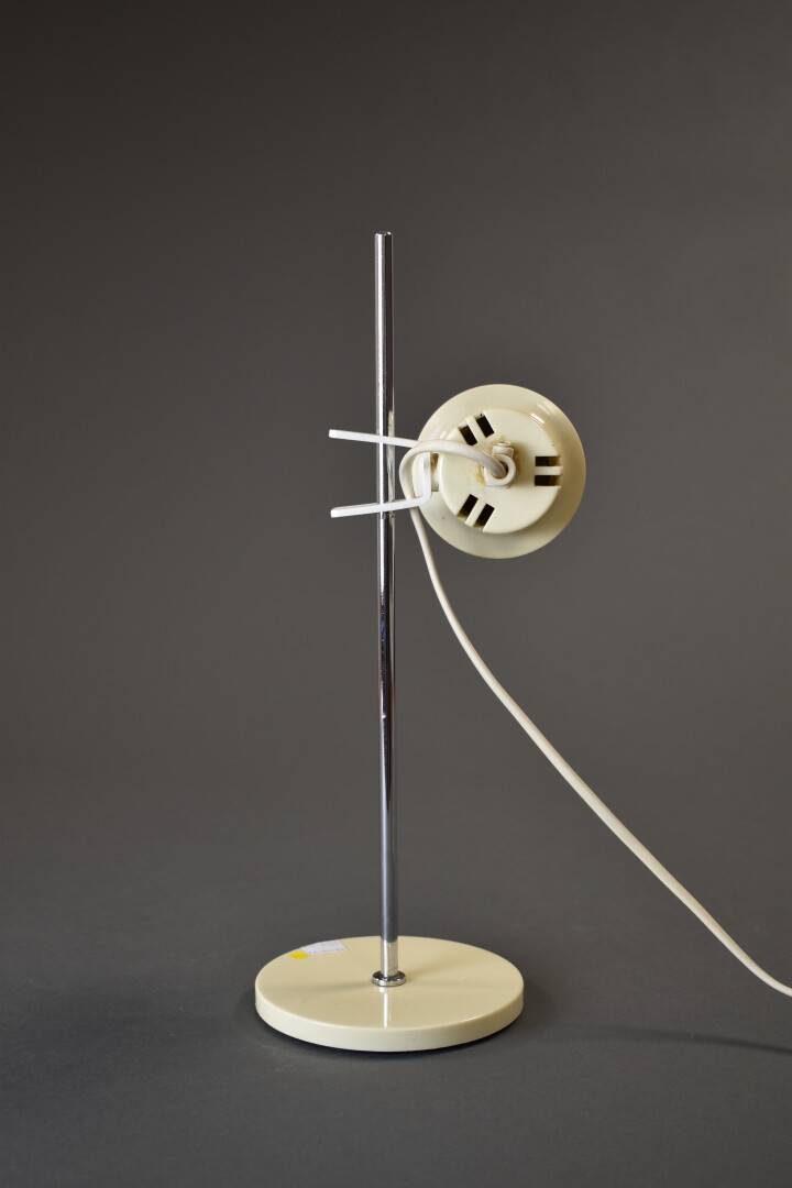 Petite lampe à poser en métal chromé et résine crème, lumière à hauteur ajustable. Vers 1970. Haut. : 35 cm.