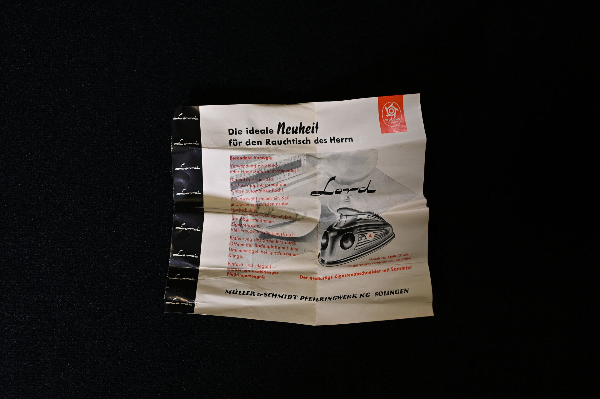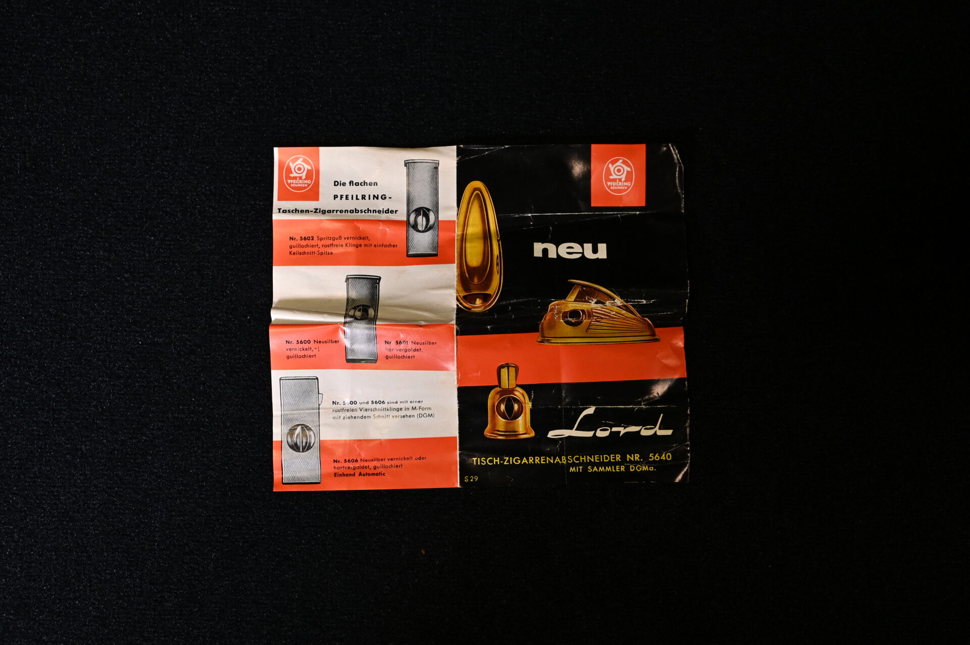 PFEILRING SOLIGEN. Modèle Lord. Coupe-cigare de salon. Boite d’origine et notice. Début du XXe siècle. Haut. ouvert : 5,9 cm. Larg. : 9,8 cm.