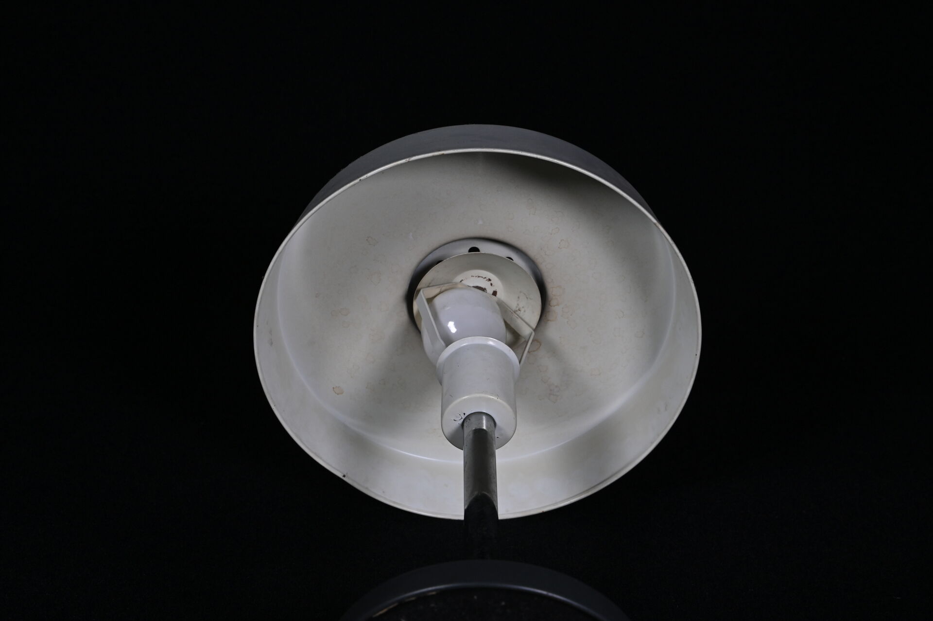 PHILIPS. Lampe de bureau en métal, le fût chromé, l’abat-jour laqué gris. vers 1970. Haut. : 39 cm.