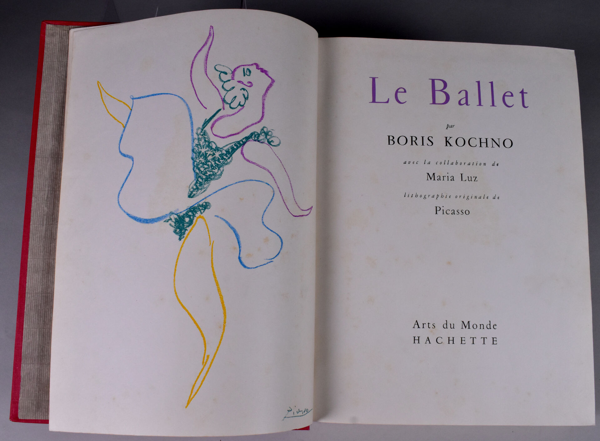 [PICASSO]. KOCHNO (B.). LE BALLET. Paris, Hachette, [1954]. Petit in-folio reliure toile éditeur ornée au 1 er plat d’un dessin au trait d’après Matisse. Rousseurs claires éparses. ÉDITION ILLUSTRÉE en frontispice d’une LITHOGRAPHIE ORIGINALE couleurs d’après Pablo PICASSO. Nombreuses reproductions en noir et en couleurs.