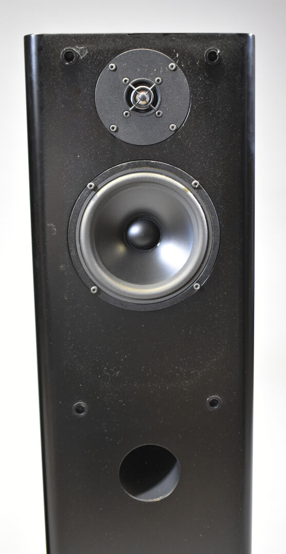 PIERRE ETIENNE LEON. Paire d’enceintes acoustiques modèle Trilobe signature ? Haut. : 97,5 cm.