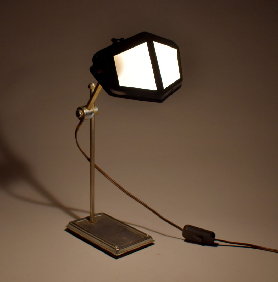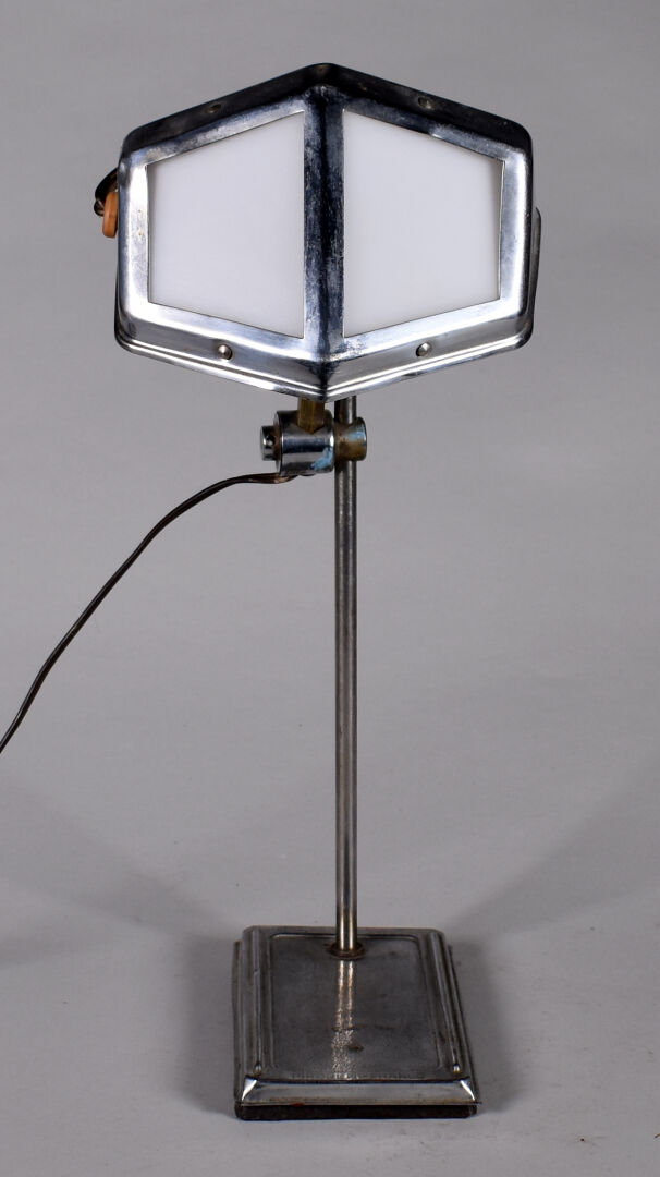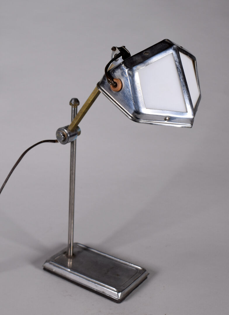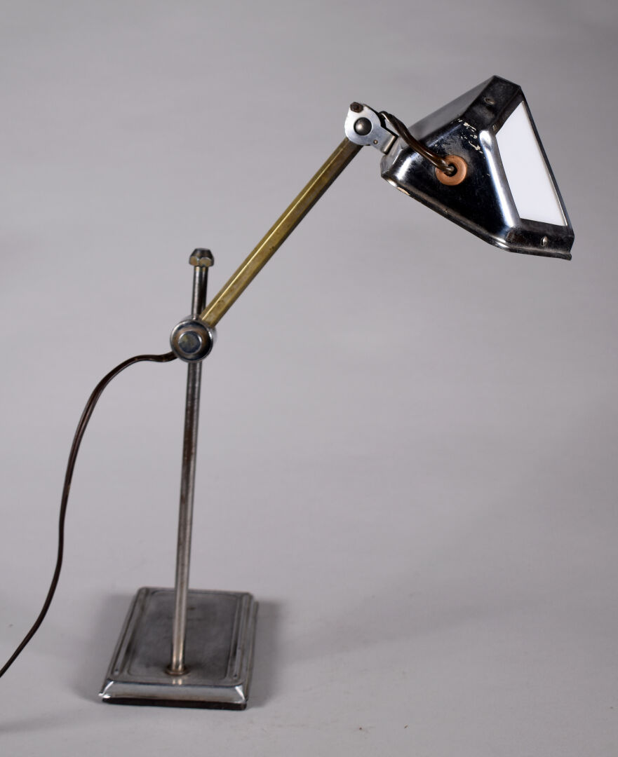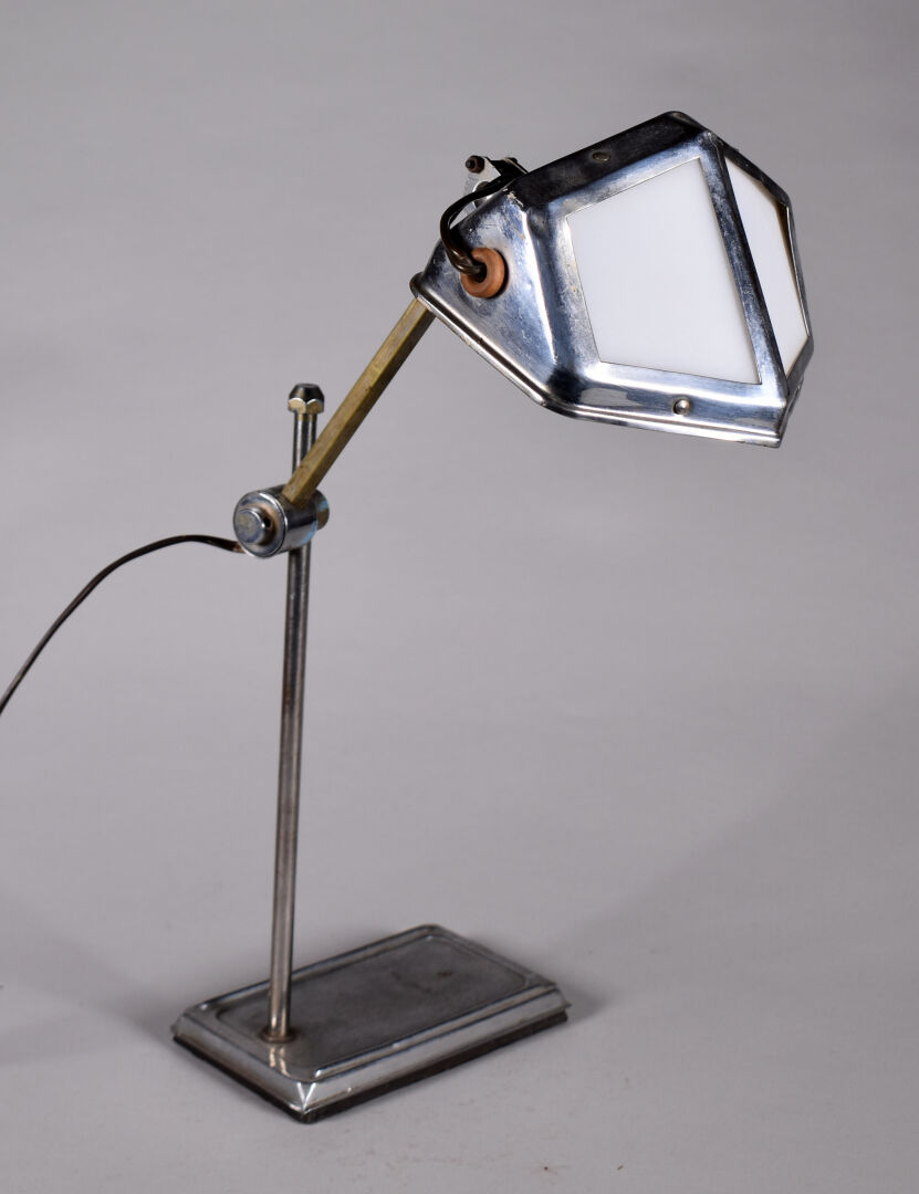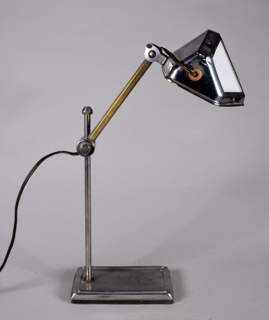 PIROUETT. Lampe à poser en métal chromé (quelques usures), hauteur ajustable. Marquée à la base. Haut. : 41 cm.
