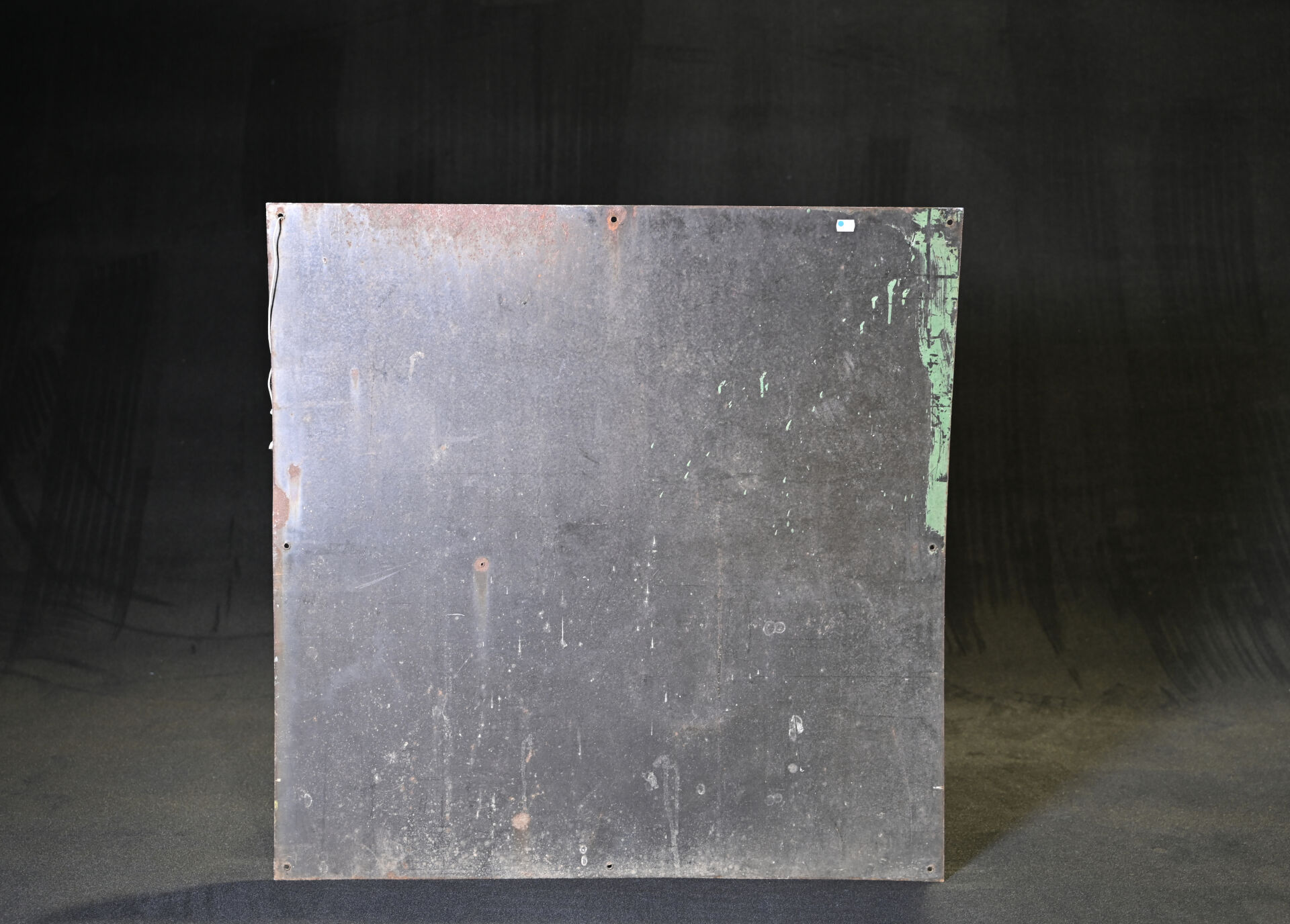Plaque émaillée PILE WONDER (éclats et petits manques). 100 x 100 cm.