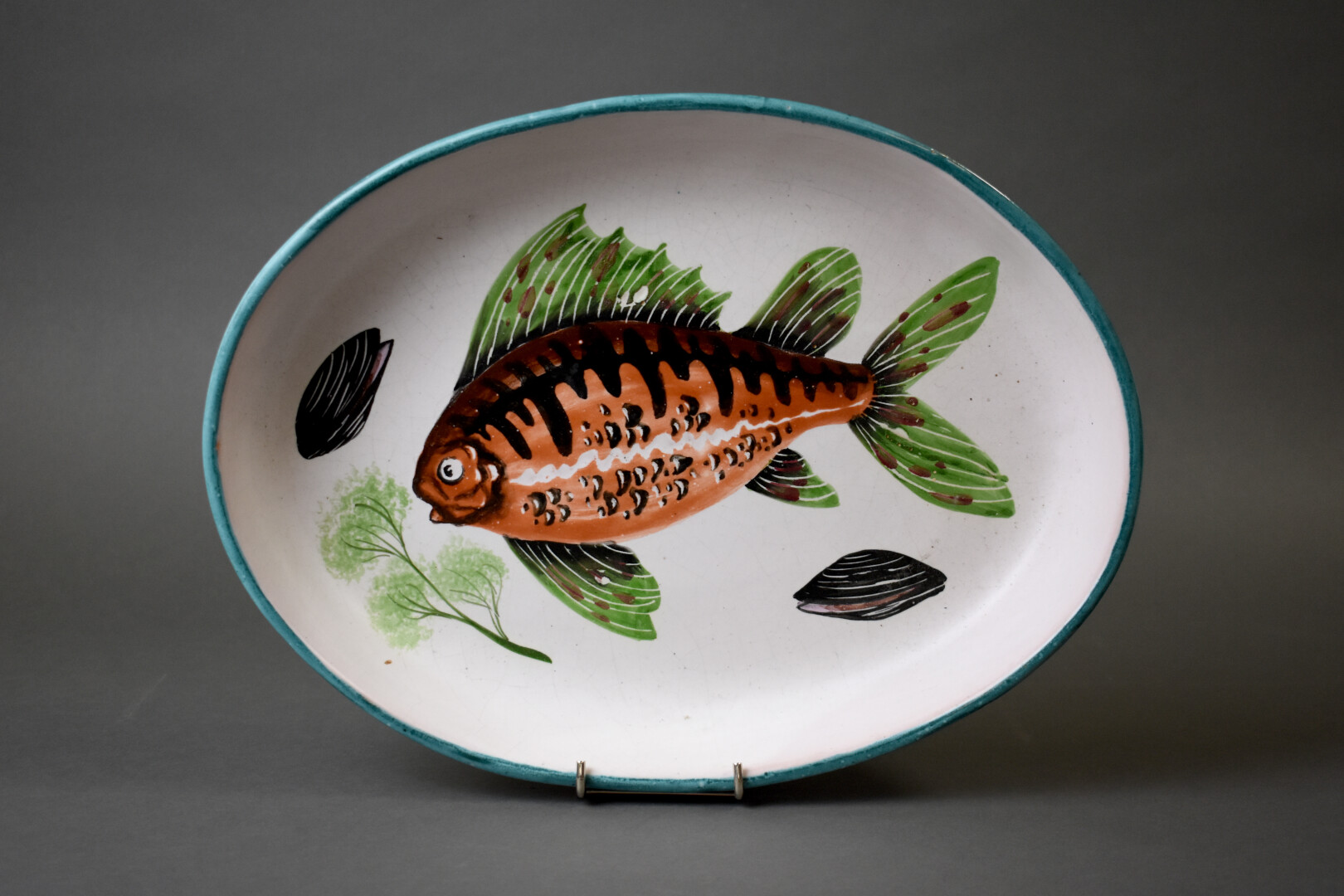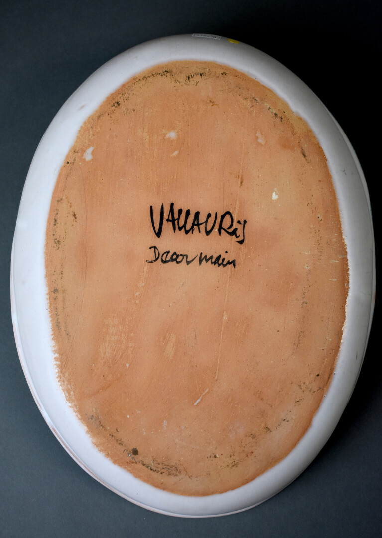 Plat ovale à poisson en céramique à décor d’un poisson. VALLAURIS. 35 x 26,5 cm.