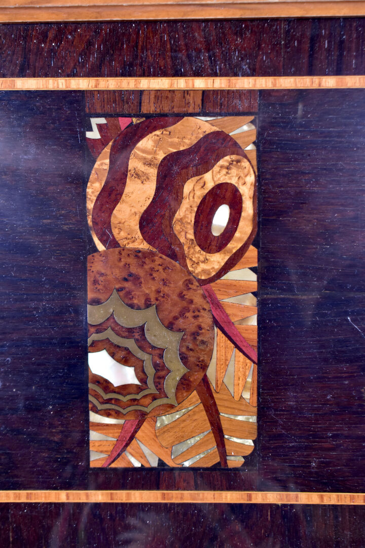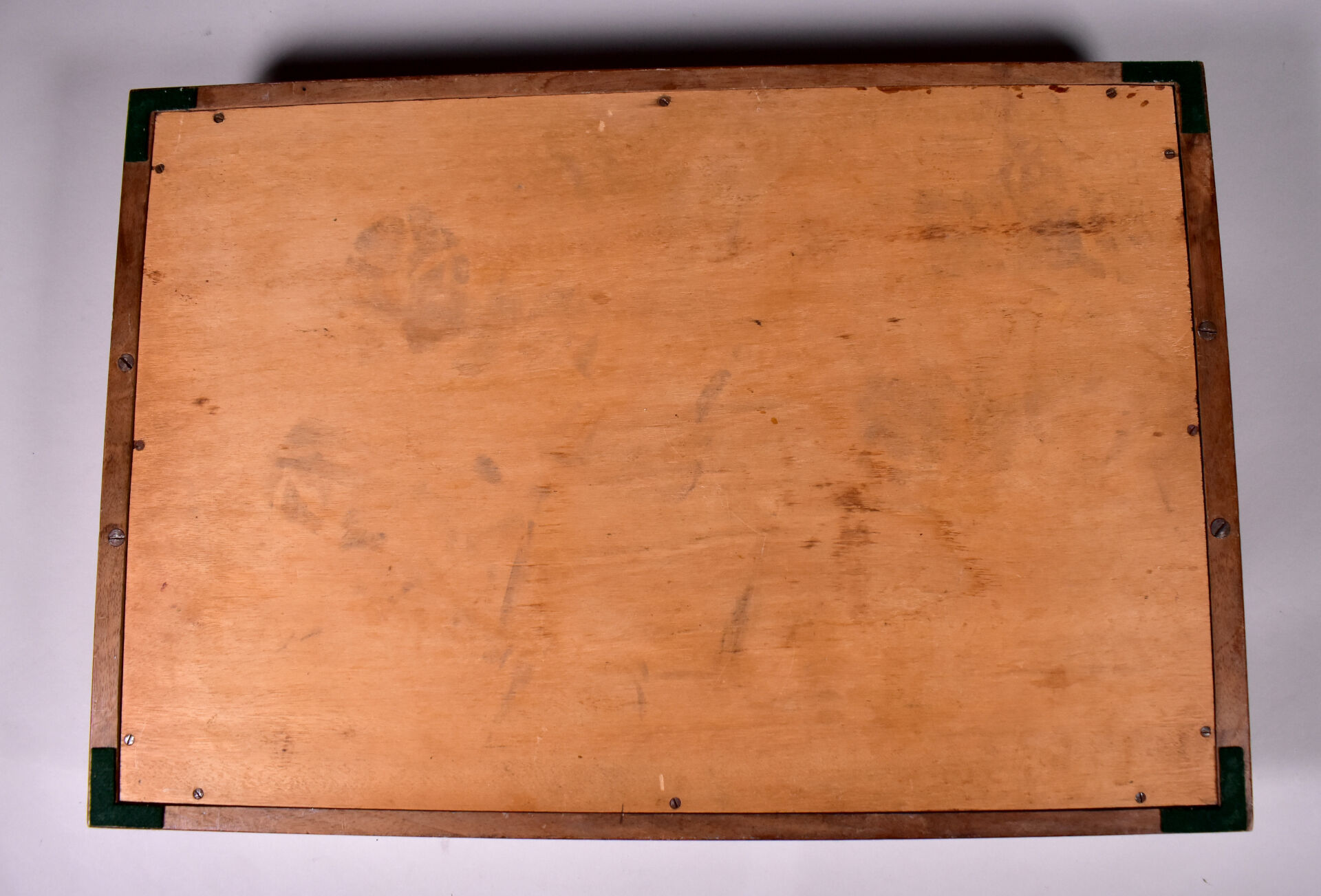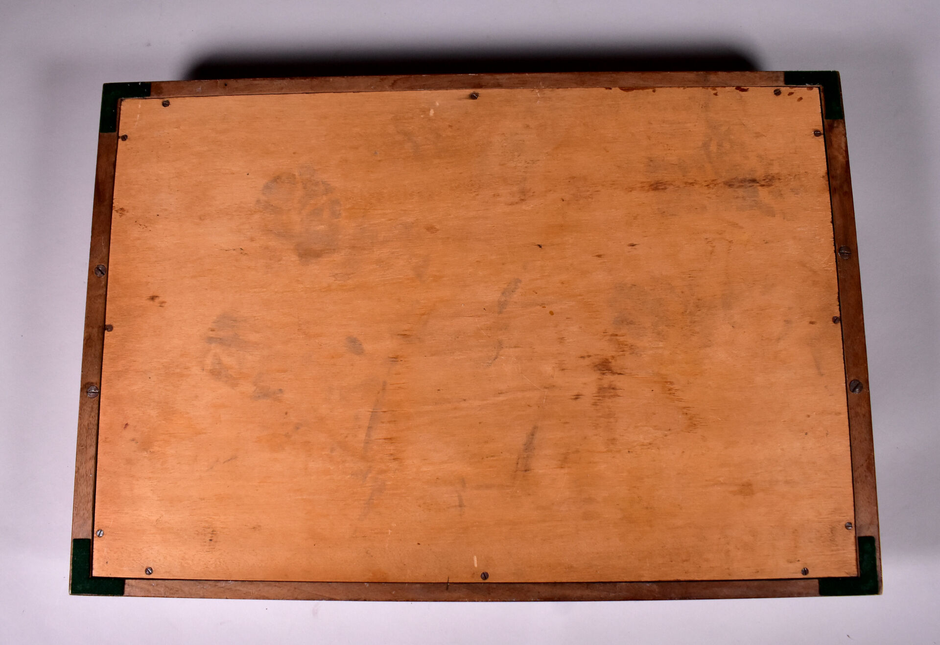Plateau en noyer à décor marqueté de fleurs en bois de placage, nacre et laiton (quelques usures). Epoque Art Déco. 58 x 38 cm.