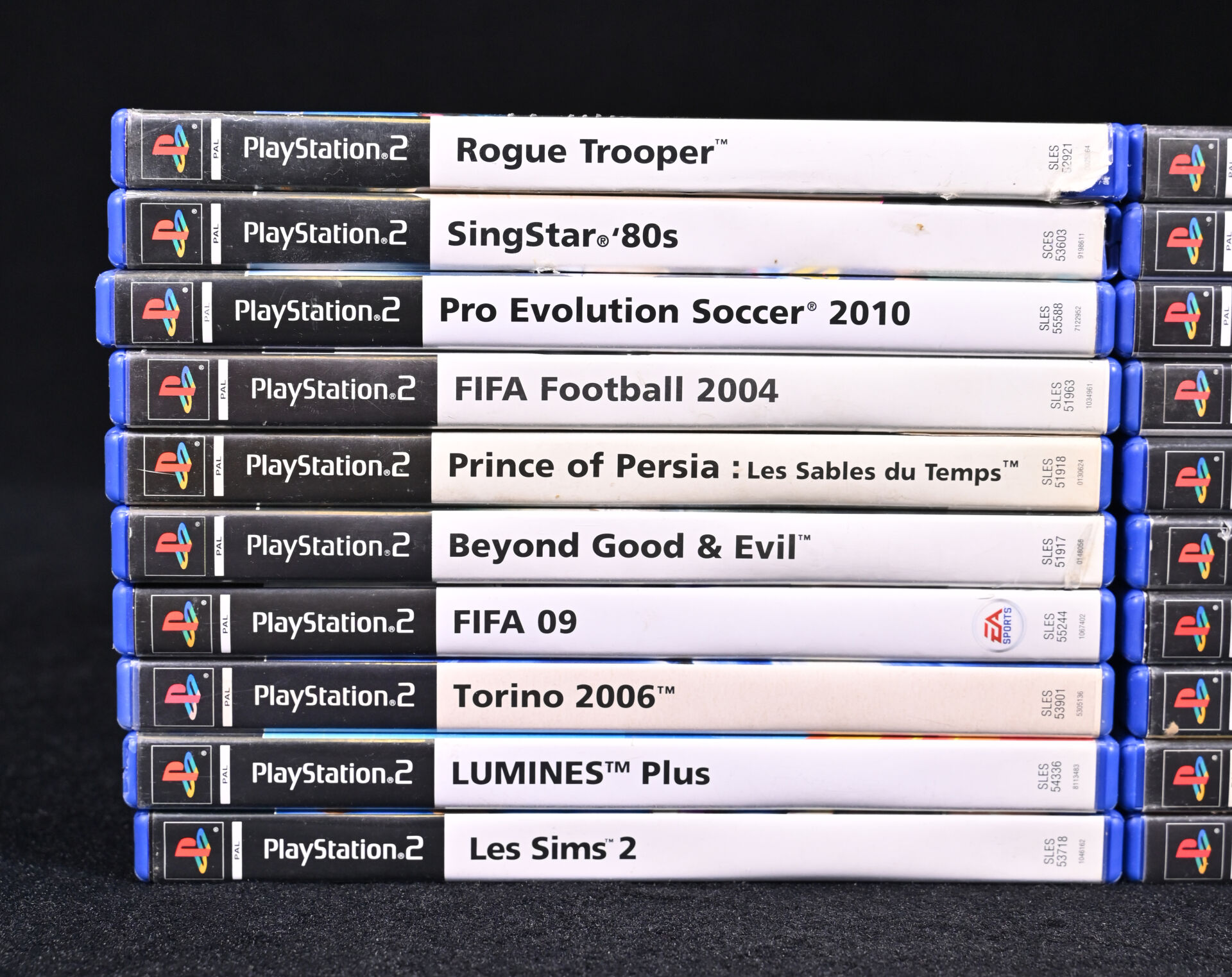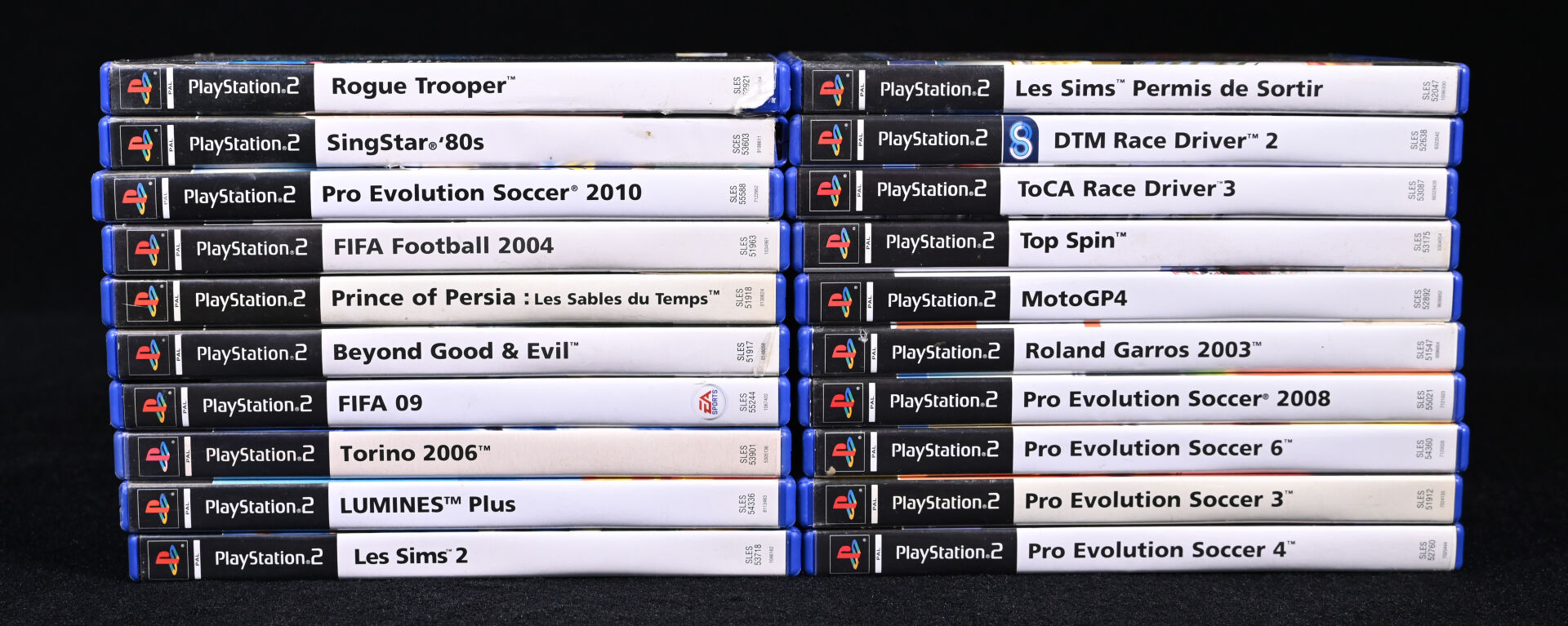PLAYSTATION 2. Ensemble de 20 jeux dont ROGUE TROOPER, BEYOND GOOD & EVIL, TORINO 2006, LUMINES PLUS, DTM RACE DRIVER 2, MOTOGP4 et divers (usures d’usage).