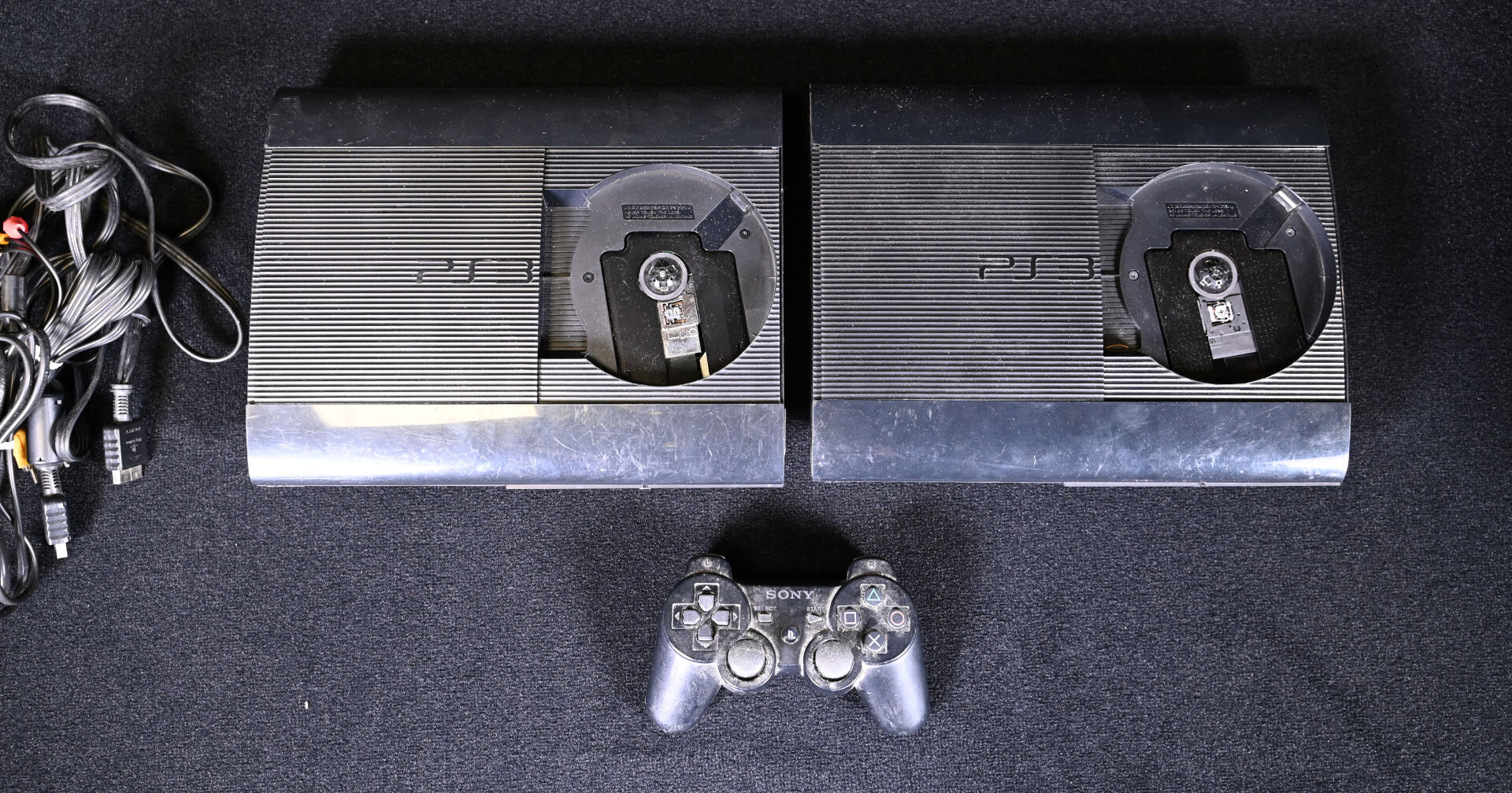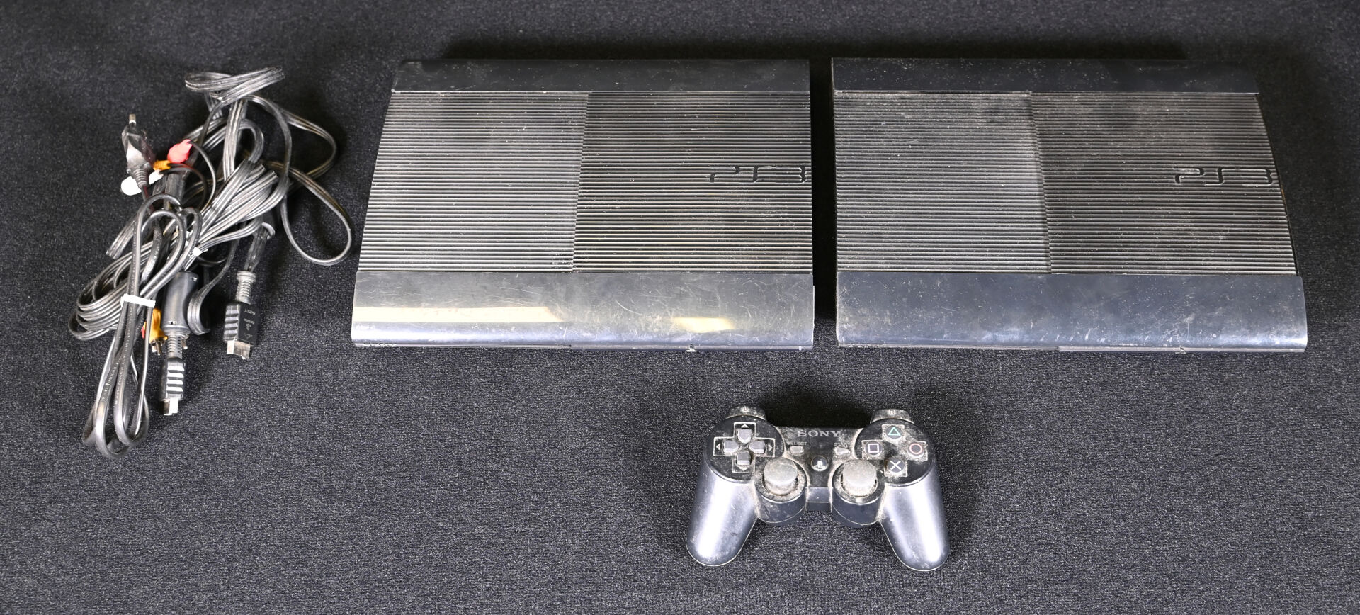 PLAYSTATION 3. Deux consoles série limitée ultra SLIM, une manette et câbles (usures d’usage).