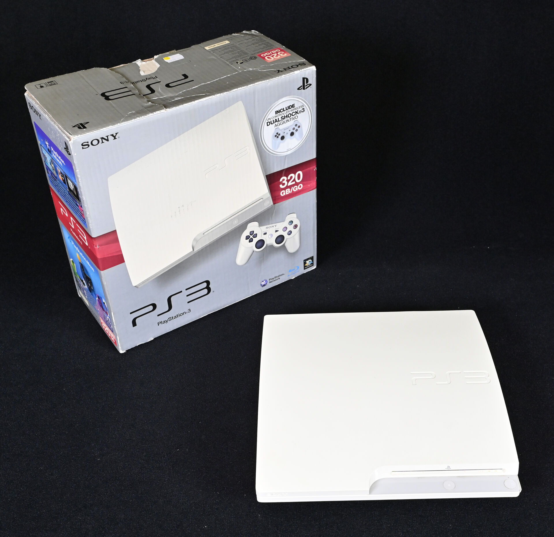 PLAYSTATION 3. Une console blanche. Avec boîte.