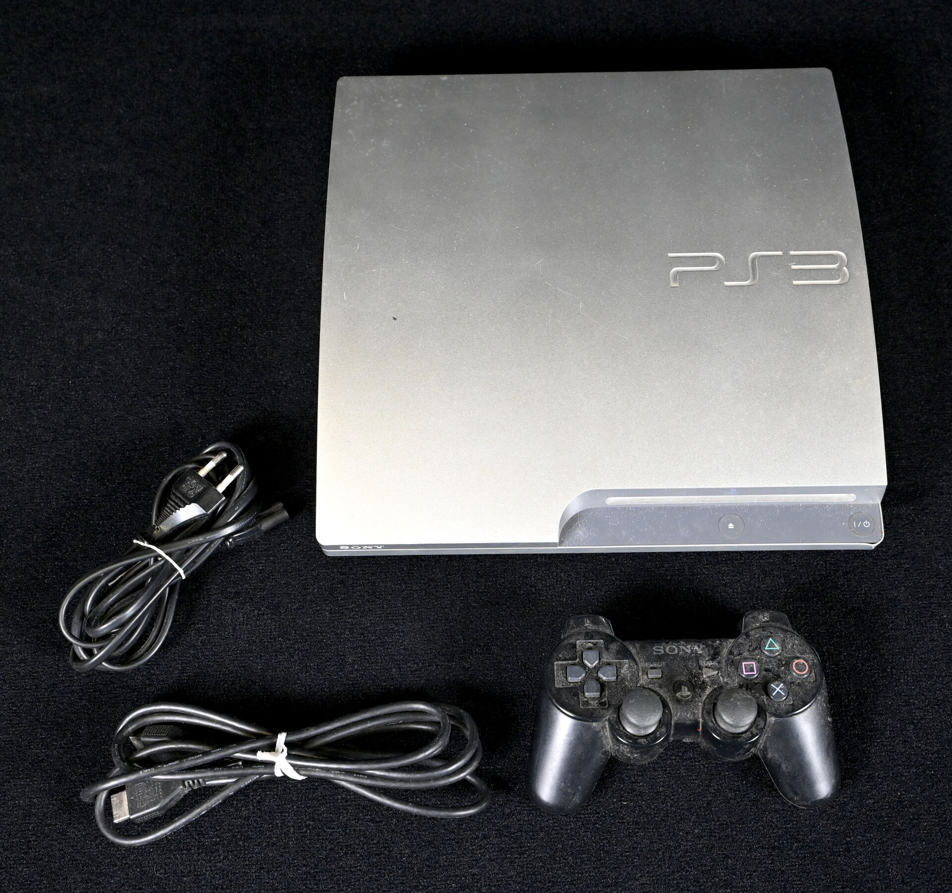 PLAYSTATION 3. Une console série limitée SILVER, une manette et câbles (usures d’usage).