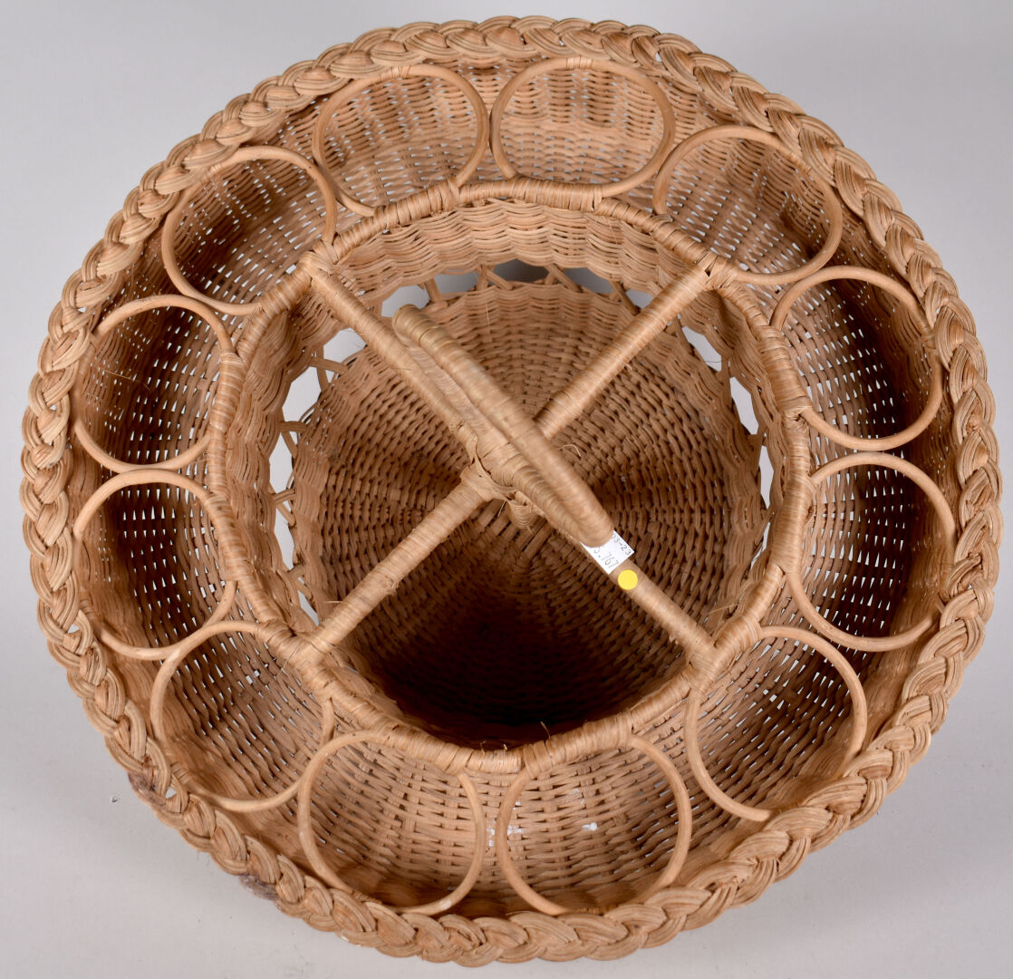 Porte bouteilles ou verres en osier tressé. XXe siècle. Haut. : 32 cm – Diam. : 46 cm.
