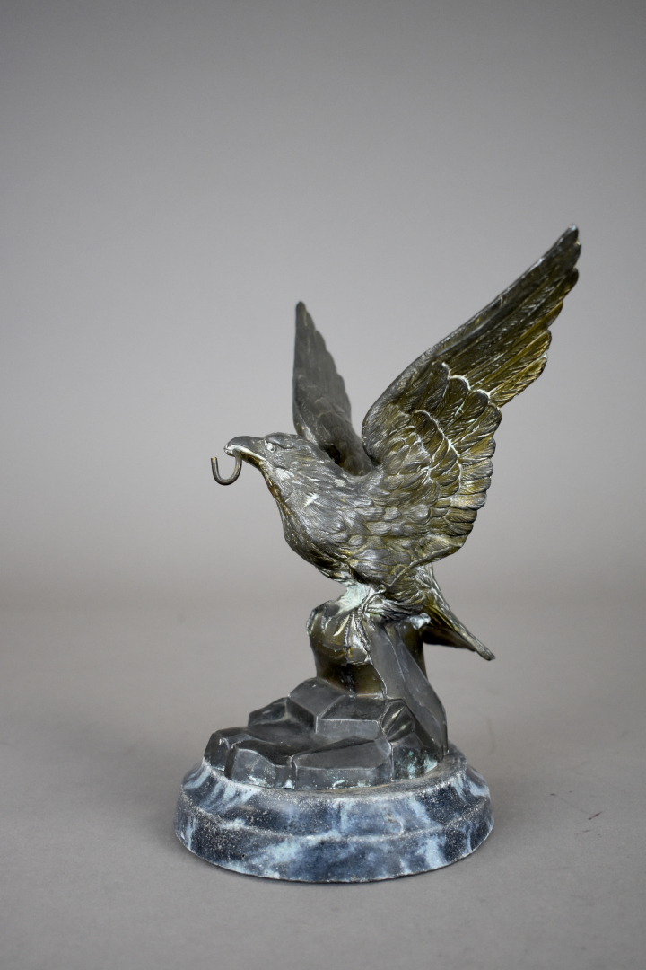 Porte montre en régule anciennement doré figurant un aigle sur un rocher. Début du XXe siècle. Haut. : 21 cm.
