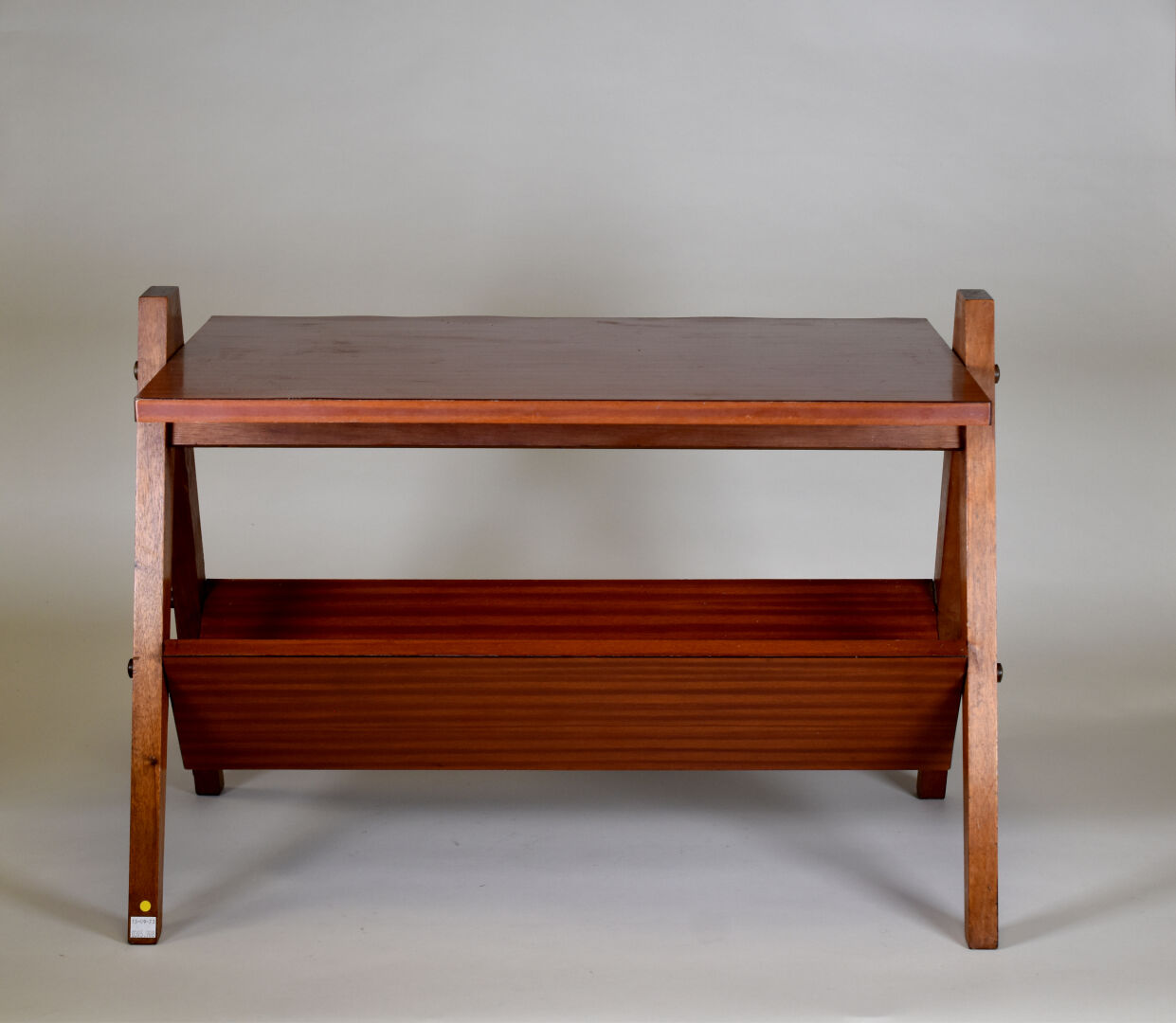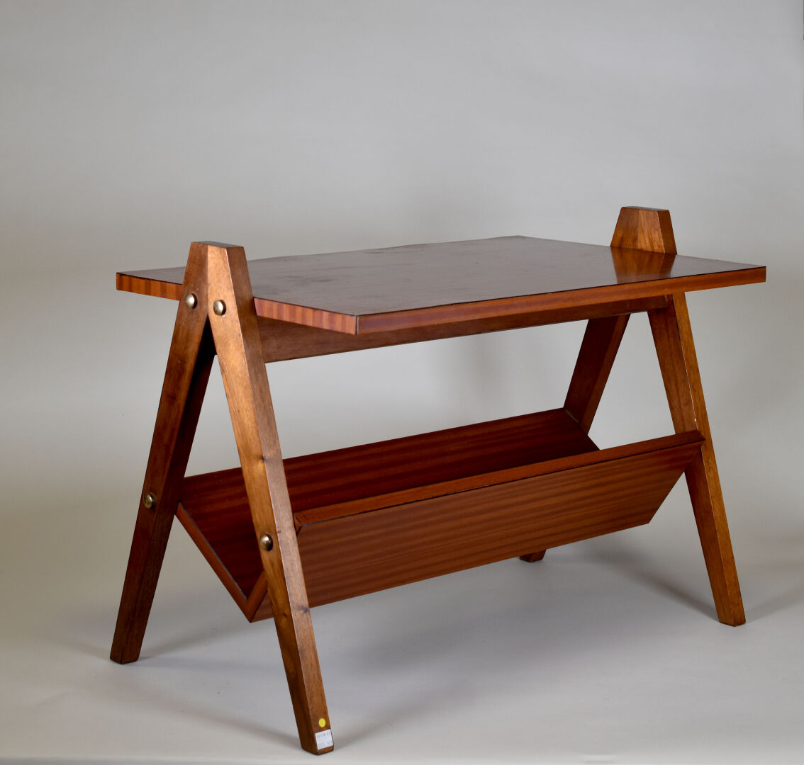 Porte revues en aggloméré plaqué d’acajou. Travail des années 1960. Haut. : 45 cm – Larg. : 70 cm – Prof. : 37 cm.