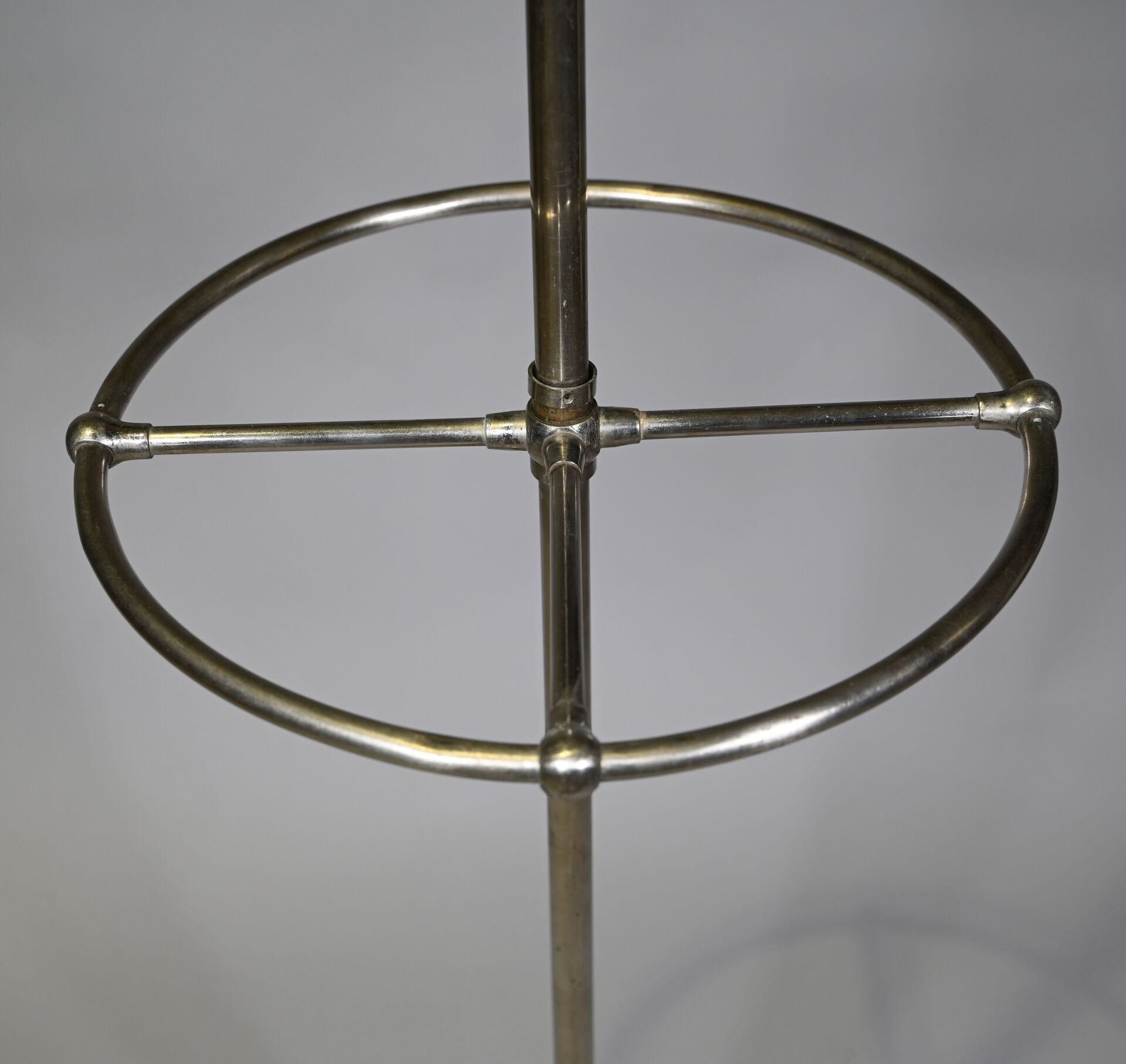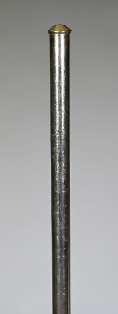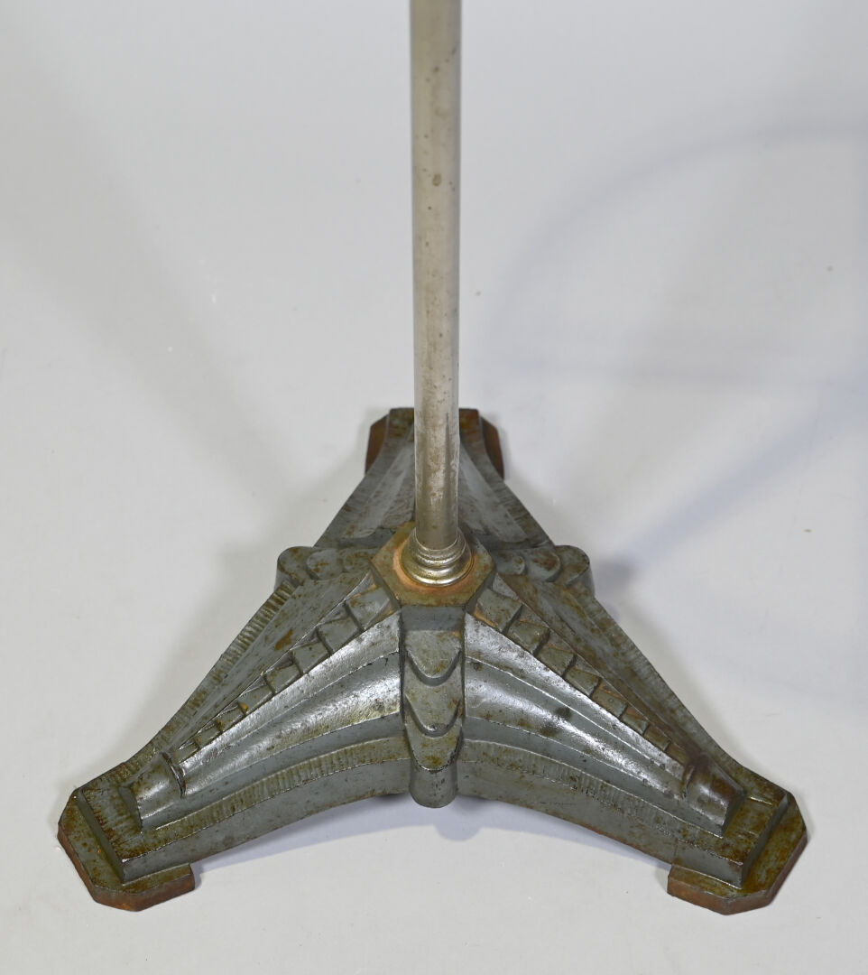 Porte vêtements ? en fonte et métal chromé. Piètement tripode à motifs géométrique (manque un élément). Vers 1930. Haut. : 176 cm.