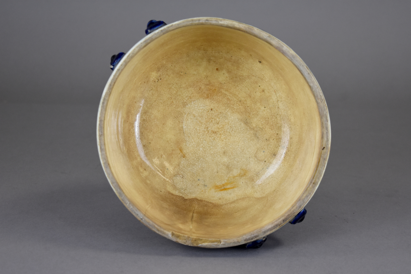 Pot couvert en porcelaine de la chine à décor en bleu imprimé (un éclat, un fèle).Diam. : 20 cm.