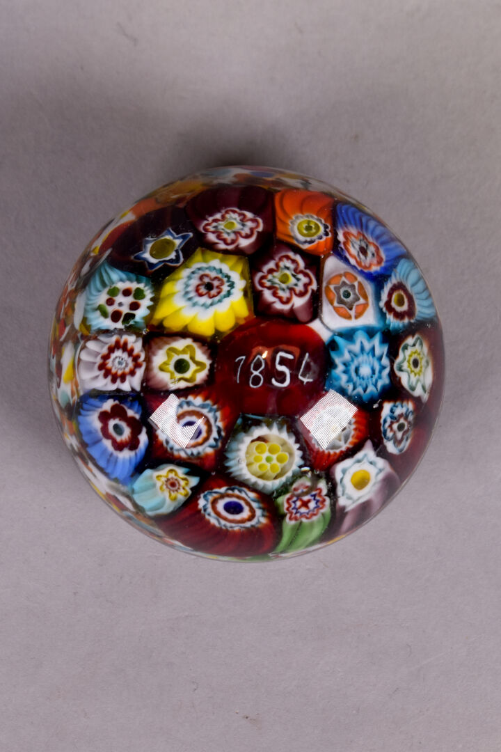 Presse papier sulfure daté 1854. Diam. : 6 cm.