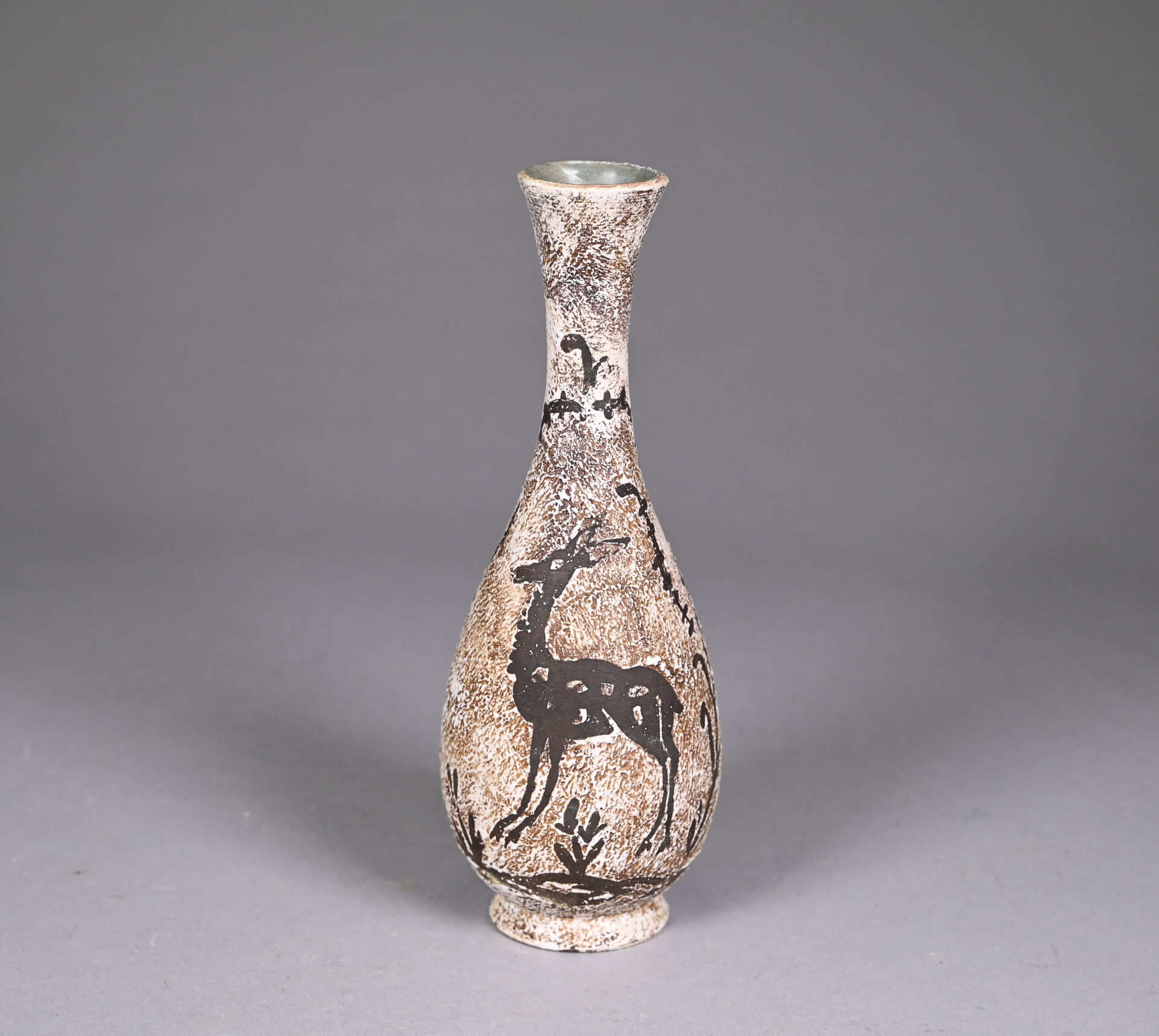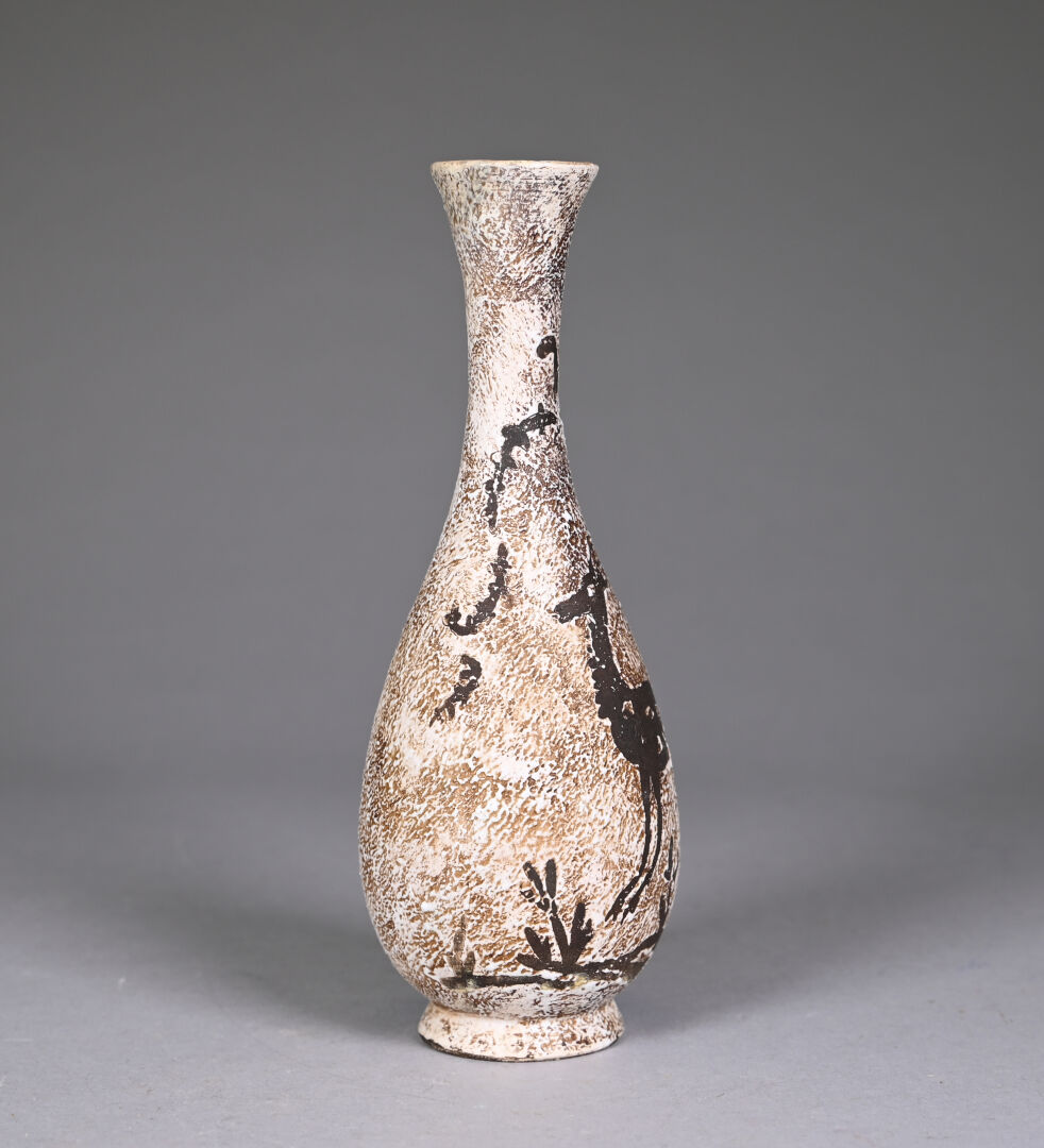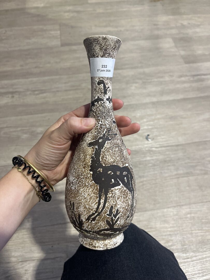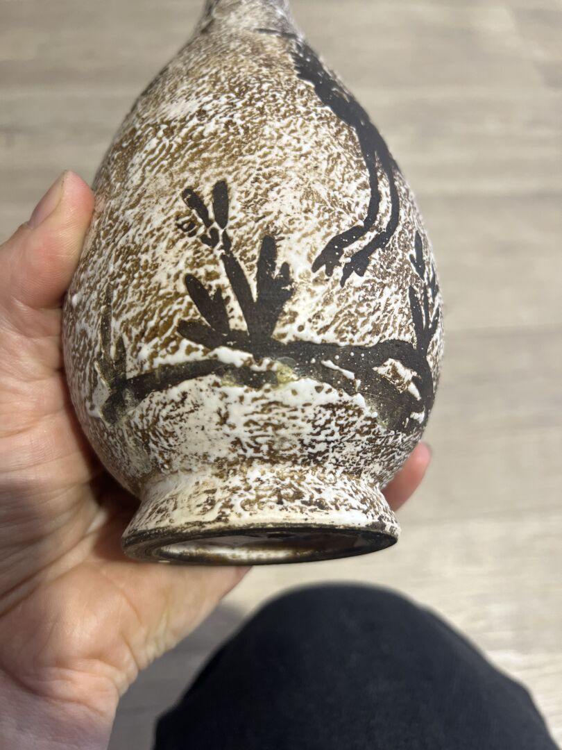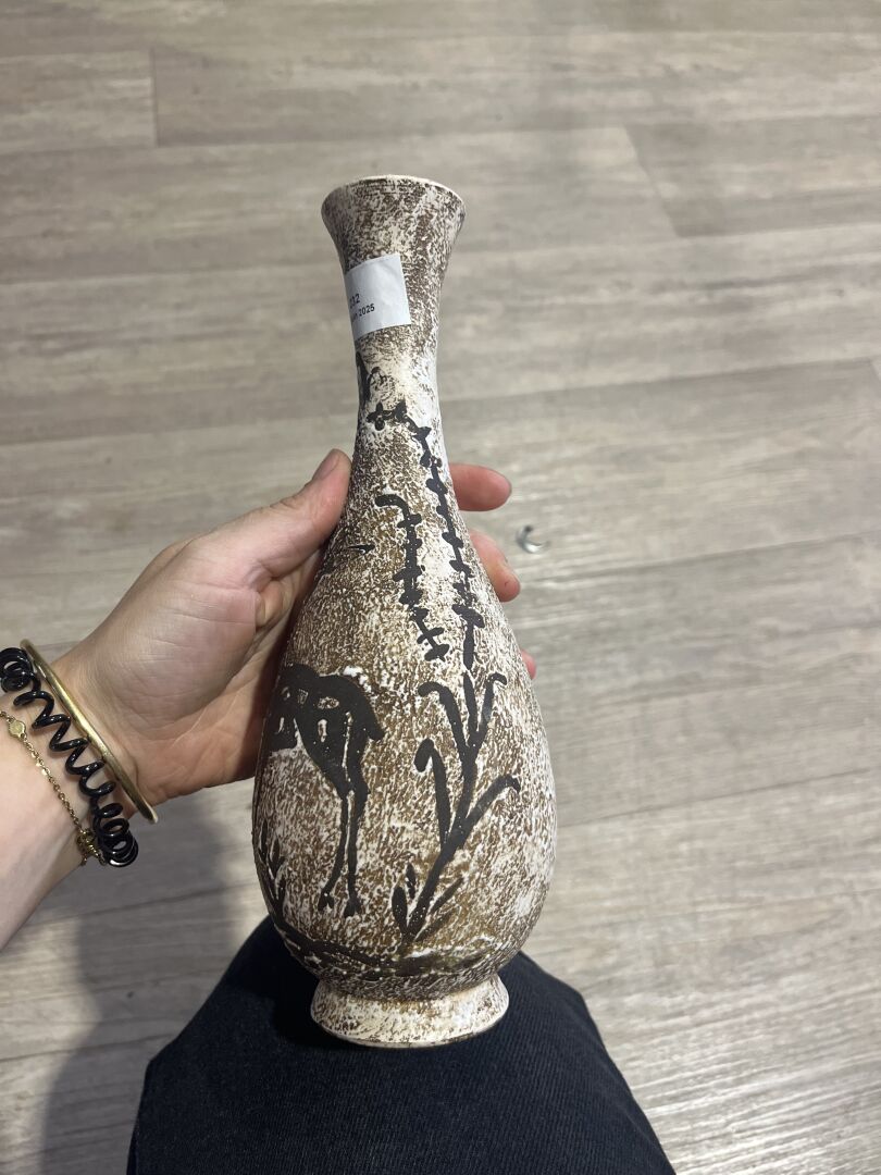 Probablement Jean BESNARD (1889-1958) dit René BLUET . Vase balustre à haut col en céramique émaillée en brun d’une biche. Monogrammé au dessous. Haut. : 25 cm.