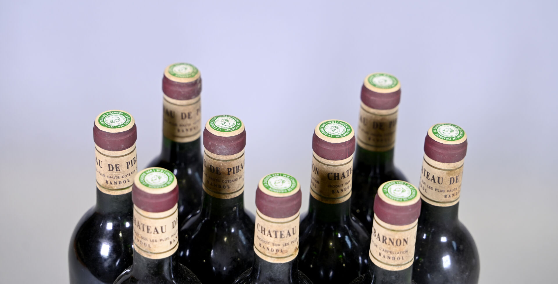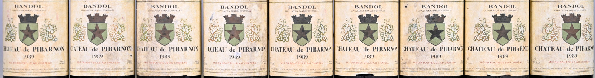 PROVENCE – 9 bouteilles, Bandol (rouge), Château de Pibarnon, 1989. 2 BG. Capsules légèrement sales à sales. Etiquettes légèrement sales à sales et légèrement abimées.