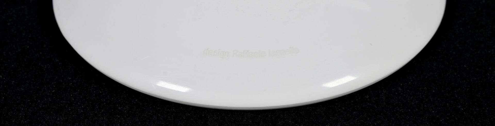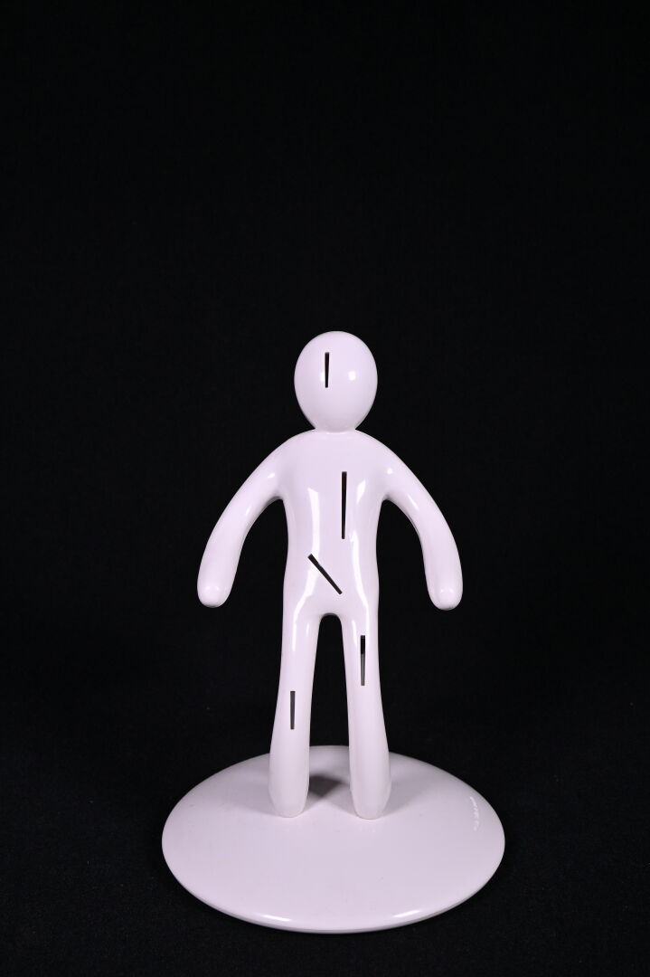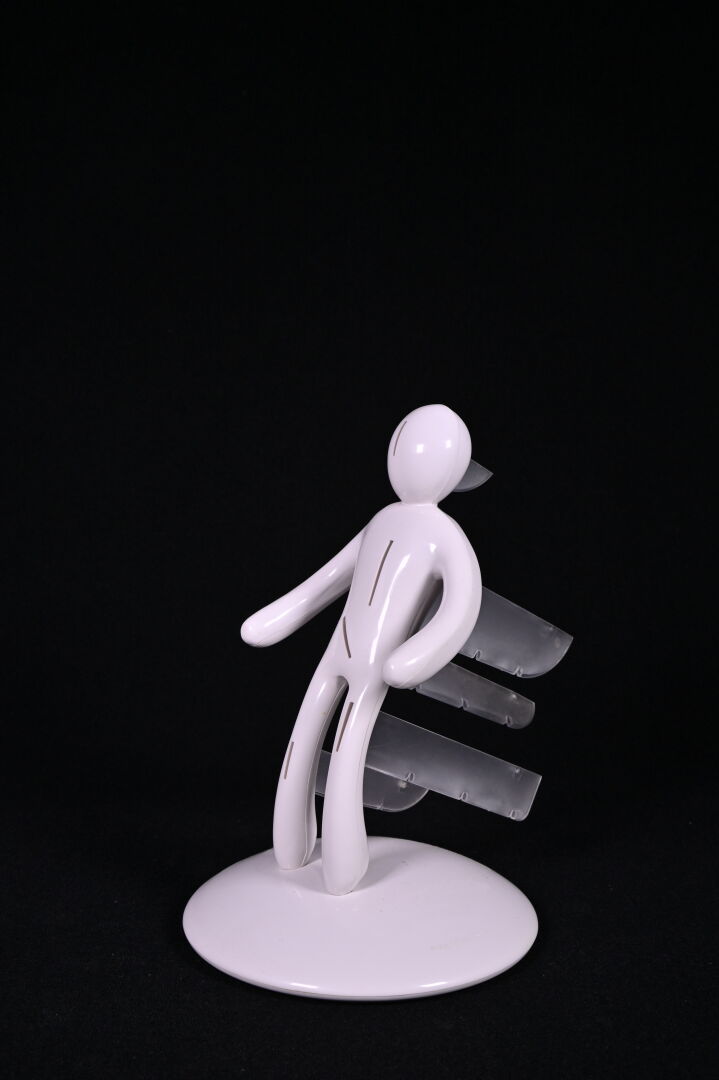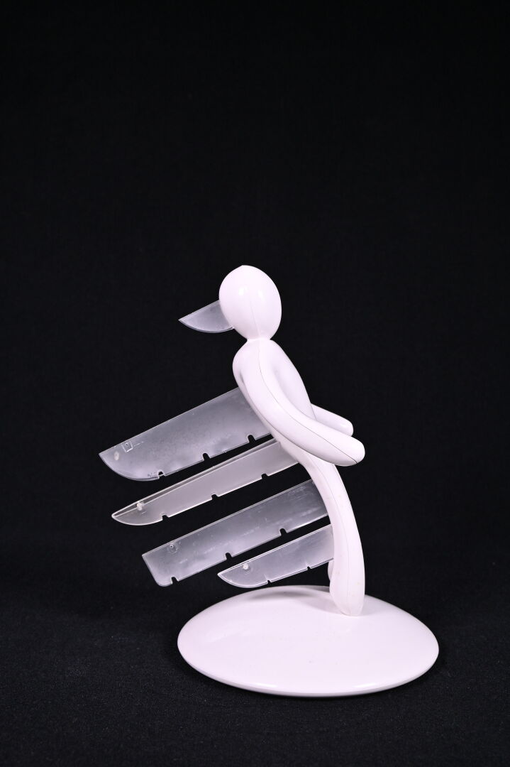 Raffaelle LANNELLO. Porte-couteaux en plastique blanc représentant un personnage. Marqué. Haut. : 37 cm.