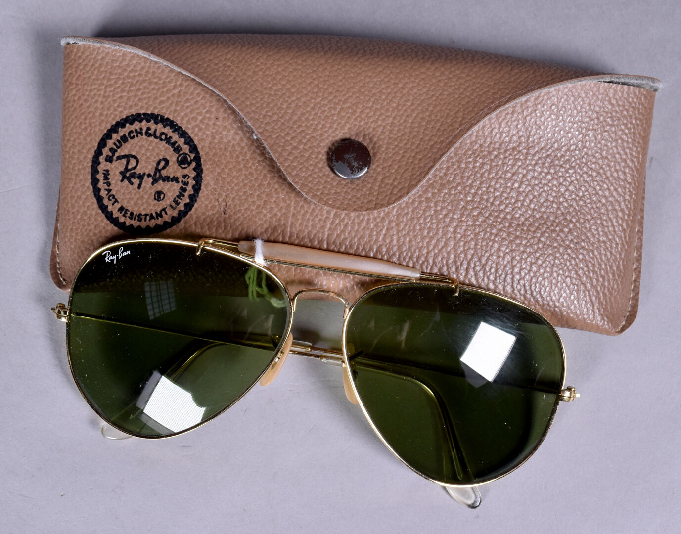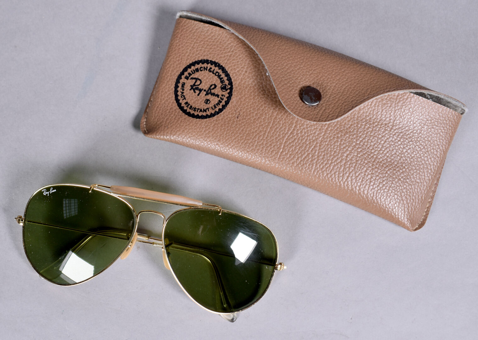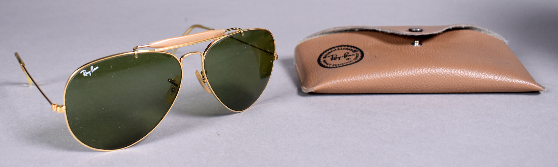 RAY BAN. Paire de lunettes de soleil pilote, les verres signées BL pour Bauch & Lomb. Etui.