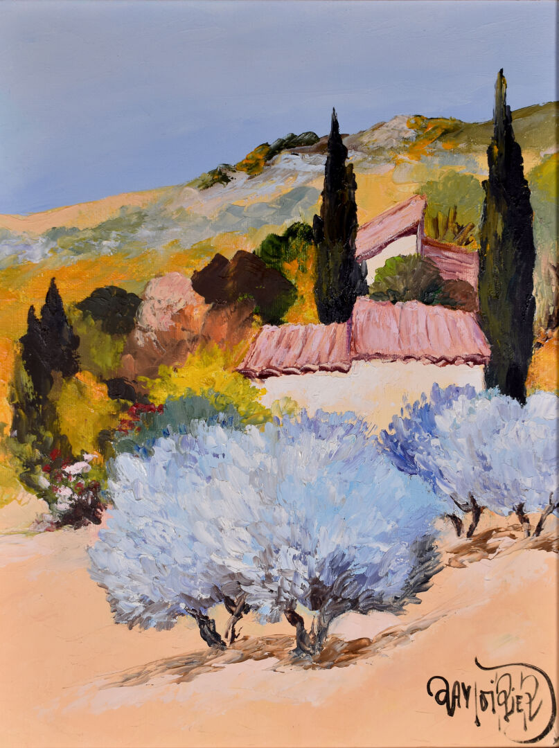 Ray POIRIER (né en 1938). Paysage du Midi. Huile sur toile signée en bas à droite. 35 x 26 cm.