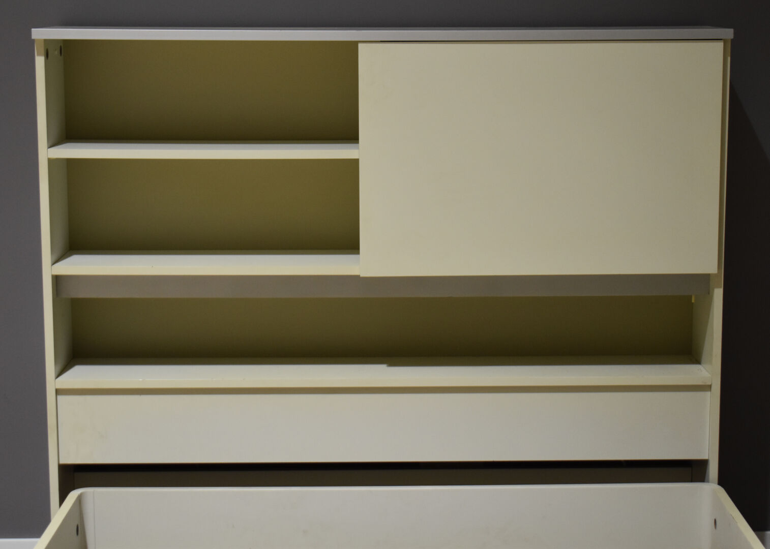 Raymond LOEWY (1893-1986). Lit 2 places et tête de lit en aggloméré laqué crème et isorel (électrifié).